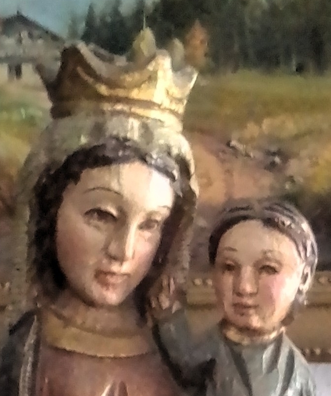Y no es ésta, la que hemos comentado, la única Virgen en la familia. Bernardino Pinto tiene también una propia, la «del químico Pinto», en la que sale él ante la santísima, en un cuadro pintado por su esposa M.ª Luz Llona.