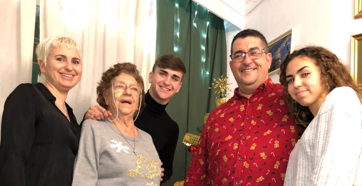 Desde Málaga la familia Rodríguez Pinto. Ana Pinto Ruiz con Juan José y Nuria y los nietos de Anita Nerea y Antonio. Y Ana Mari y Manolín (¡viva Manolín!) y con Araceli y Jose Carlos y los hijos de éstos, el tocayo y Ana.