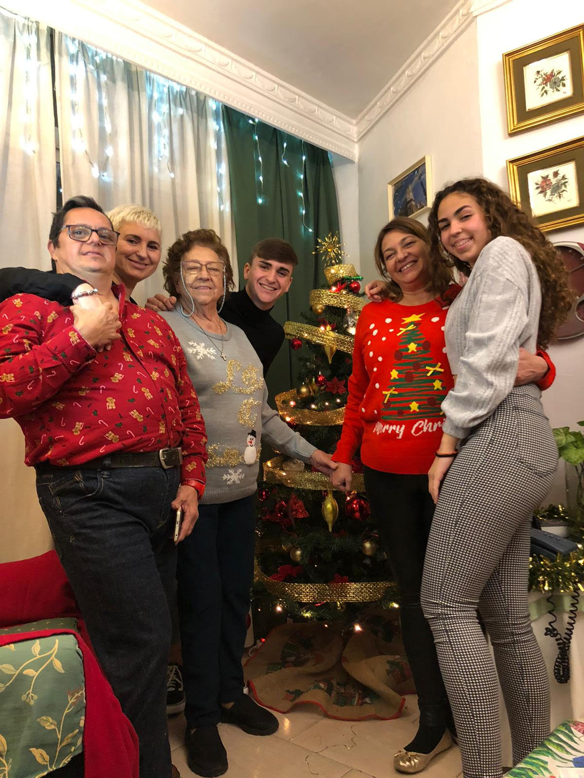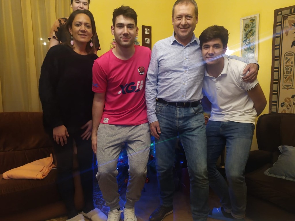 Felices fiestas, con un rayo de esperanza, de los Pinto García desde Oviedo: Iria, Juncal, Pelayo, Carlos y Alfonso.