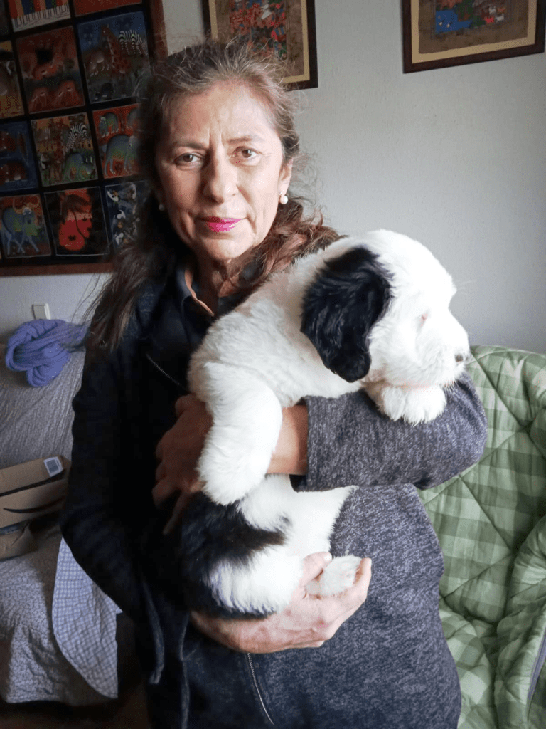 Ana Pinto Llona, desde San Rafael, Segovia. Con su perrita Popa. De Hipopótamo, que era su nombre de cachorra por sus formas y maneras.