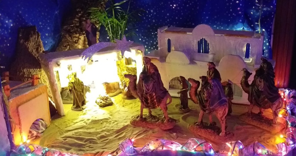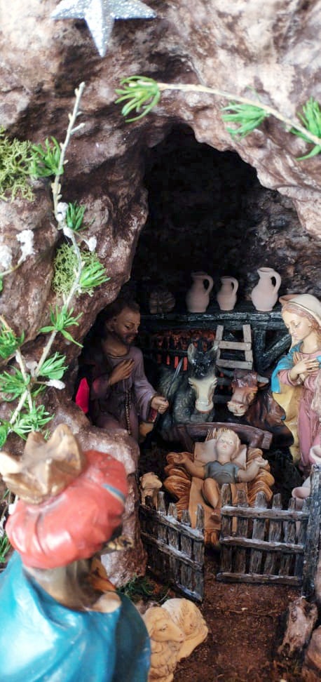 Desde Málaga, los Rodríguez Pinto. Un belén cuyas casas están hechas a man La arena es de la Caleta de Cadiz. Manolo y Anamari dedican un día entero de montaje. Las luces, las casas ¡y villancicos!, muchos villancicos en el montaje… y después jajaja.