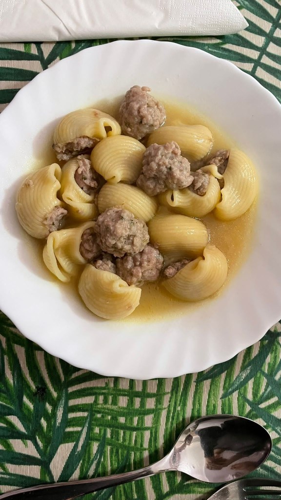 Y la sopa rellena. La descubrimos no hace mucho tiempo ojeando libros de recetas tradicionales. Es curioso, pero esta relación de la pasta con Cataluña, Valencia e Islas Baleares es algo desconocida y es una parte importante de su acervo culinario. En uno de los mejores blogs de cocina que se han hecho en este país, Salseando en la cocina, Maduixa, su autora, nos hablaba de esta tradición de la que se tiene constancia hace siglos, más concretamente desde la Edad Media. De hecho los galets, esas caracolas de pasta de tamaño mediano, grande o muy grande que muchos habréis visto y son tan tradicionales en estas fechas, son parte fundamental de la sopa más emblemática del Nadal o Navidad catalana. Hablamos de la sopa de galets, sopa que en algunas regiones, zonas o familias se convierte en una sopa rellena, la sopa que hoy os mostramos. Aunque ya se pueden comprar por aquí, hace una década era dificilísimo adquirirlos. La sopa rellena es similar a la sopa de galets de Nadal. Aunque para su elaboración no se utiliza la famosa pilota, que es esa carne picada hecha albondigones tan típica de la carn d’olla y l´escudella, dentro de los galets también hay un relleno de carne picada que da un sabor similar al brou de l’escudella, de ahí que se le llame sopa rellena.