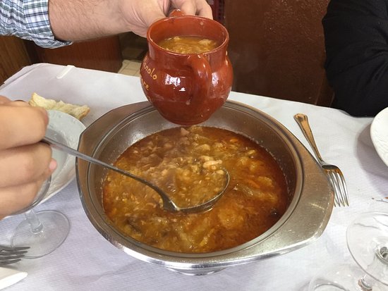 Las navidades que nació mi hija pequeña, Elsa, el 23 de diciembre, vinieron mis padres. A Yolanda le parecía que sopas de ajo era un poco desaborido, pero yo insistía en hacerlas. Cedí a hacer sopa de truchas, lo mismo pero con este pescado. Mi padre se pasó toda la cena quejándose de que tenían que haber sido sopas de ajo, ¡sin más!, y añadía “que no estamos en Carrizo” (refiriéndose a carrizo de la Ribera, donde son típicas.) La costumbre ahora es esta: Cocer una trucha grande. Una vez cocida quitarle la piel y las espinas y desmenuzarla en trozos pequeños. Mientras tanto cocer con un par de ajos pelados agua (es sopa de ajo, no con ajos.) En el mortero machacar varios ajos con sal y pimentón algo picante, para dar sabor, como decía la tía Lola. Y añadía que “sabor a León.” Se mezcla en el mismo mortero con aceite de oliva. Como costumbre antigua y de Santibáñez de la Isla añado en el agua mientras que se cuece un poco de unto (grasa de cerdo que envuelve en una bola varios ajos y se deja colgado de un palo durante un año, para que dé sabor a añejo.) Se echa el caldo de la trucha colado y los trocitos de trucha en el agua cociendo y de seguido el mejunje del mortero. El agua deja de hervir. Es cuanto vuelve a hacerlo que se aparta del fuego (este es el truco maestro.) Se echa en una sopera o en cuencos de barro individuales en los que hay trozos de pan de hogaza (el pan de barra queda muy mal) duro cortado en láminas finas. Y ¡al ataque!