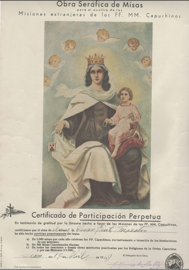Enviaron el anillo que llevaba puesto, que guardó en un pequeño cofre. Luego lo llevó siempre puesto su hermana Lola. Al morir pasó a manos de su sobrino nieto César Pinto Cañón, que lleve el nombre en recuerdo y honor de él.
