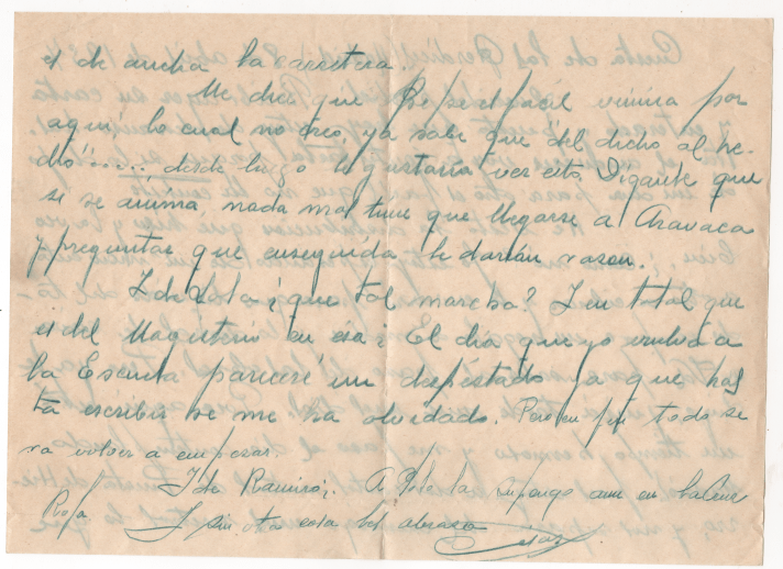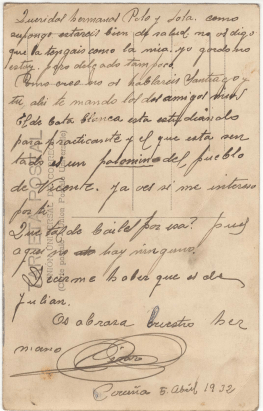 El año 1932 escribe a sus hermanas interesándose por su salud, un tanto guasón. Pregunta por su hermano Julián, que milita en el frente de izquierdas.
