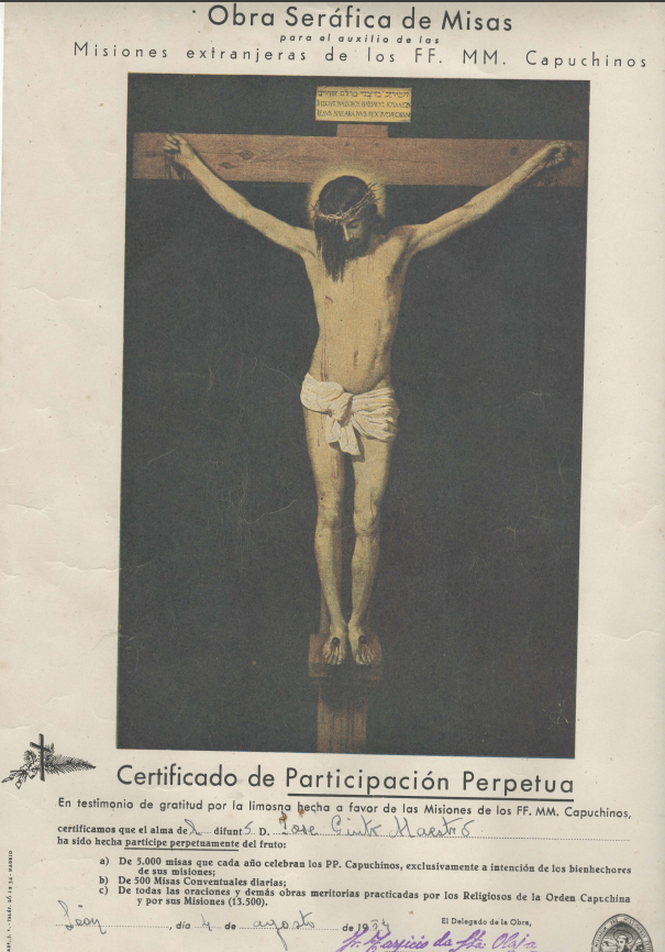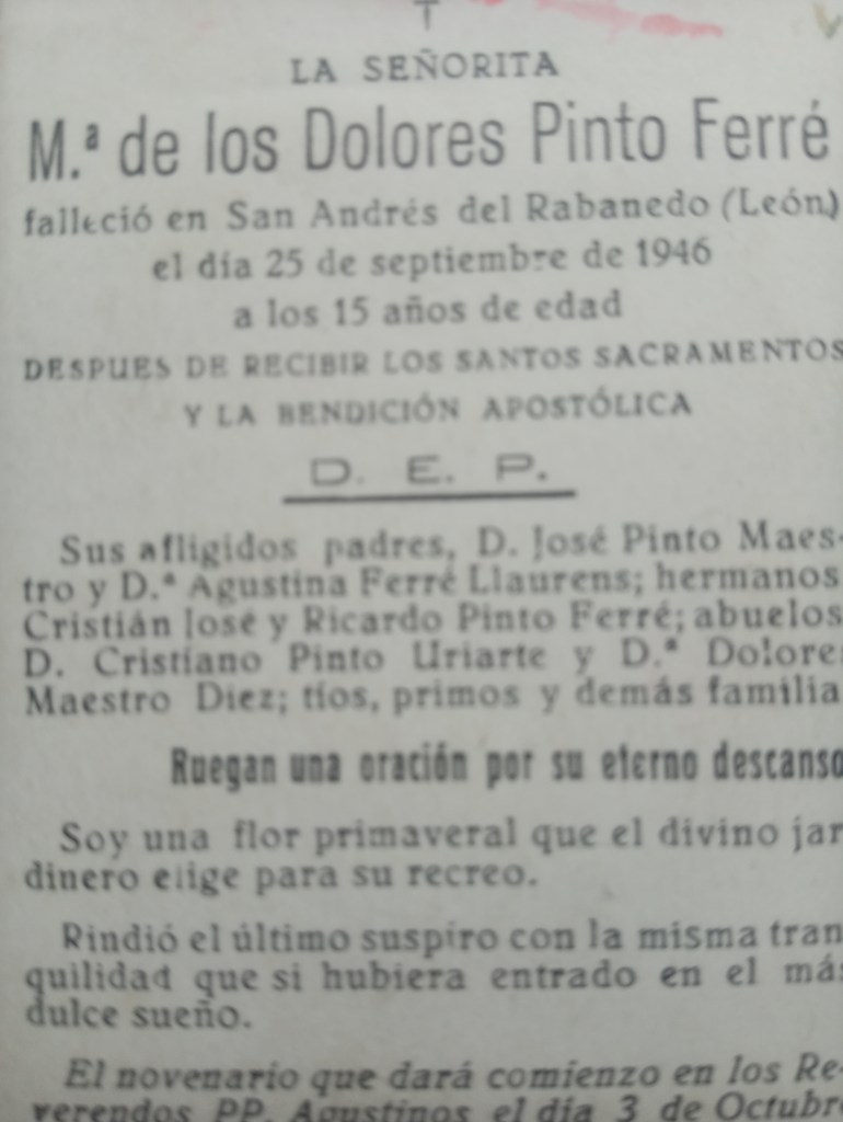 Murió en su León el año 1952, con la pena de ver morir a sus hijos, Marujina con 15 años (Mª. Dolores, 1931 – 1946.)