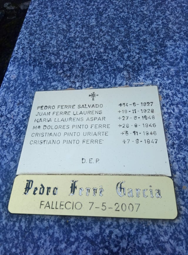 Pedro Ferré Llaurens se casó con Olvido Barrientos González. Tuvieron dos hijos: César y José (Pepín) Trabajaron en un taller. César se casó con Gloria cuyos descendientes son César, Jesús, Jorge y Cristina. Pepín se unió en matrimonio con Ana Mª. Giraldo Montañés (Marisa), hija de Rufo y Segunda. La tía Lola contaba que Rufo se dedicaba a sus negocios y que era muy huraño. Su esposa, María, se iba a ir con otro hombre dejando a sus hijas, cuando él la fue a buscar a la estación de tren, para que volviera: «Anda no hagas el tonto». Y Segunda se quedó. Fue la comidilla de León durante algún tiempo. Los hijos de Pepín y de Marisa son José (también Pepín) casado con Mª. Ángeles (Gelines). Y Carmen, casada con Joaquín, de cuya unión nació Paula, actualmente estudia un máster de comercio internacional en Alemania. Las hermanas Giraldo tienen un par de zapaterías, una de niños («Bambi»). Las hermanas de Marisa son Concha, Carmen y Blanquita. Pepín Ferré Barrientos murió en el tren a la vuelta de un viaje, yendo con Marisa y la tía Lola.