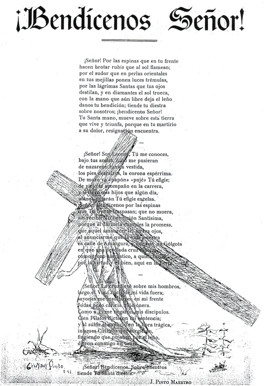 Poema dedicado a las procesiones de León. El dibujo es de su hijo mayor Cristian.
