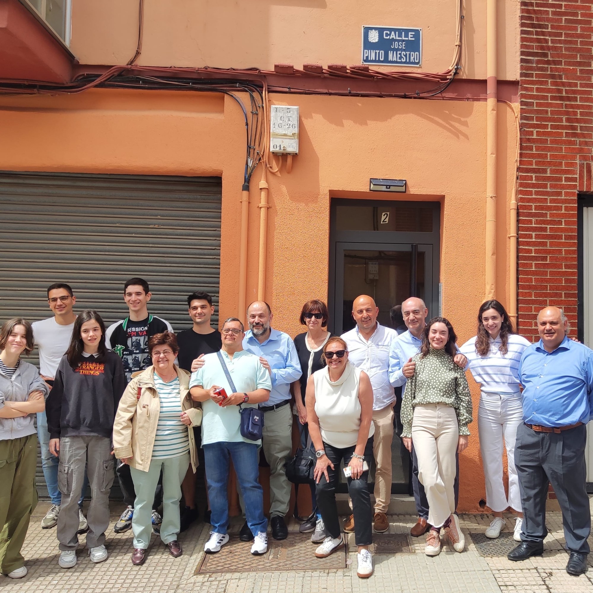 (Vista de la calle «José Pinto Maestro», una bocacalle de c/ Orozco, en la acera de enfrente al Palacio de Congresos. Entre las calles La Tercia y la calle Fraga Iribarne. Una acera de la calle Orozco limita con León y la otra con San Andrés.) En junio de 2024 se hizo un encuentro de los Pinto de León con un recorrido por la Ruta de los Pinto de León. Visitaron sus sobrinos nietos y sobrinos bisnietos la calle, como no podía ser menos.