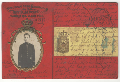 Carta que recibe el año 1927 según marca el matasellos, recuerdo de la coronación de l rey Alfonso XIII. La firma Adolfo. Pepe se queja de que en León la vida es aburrida