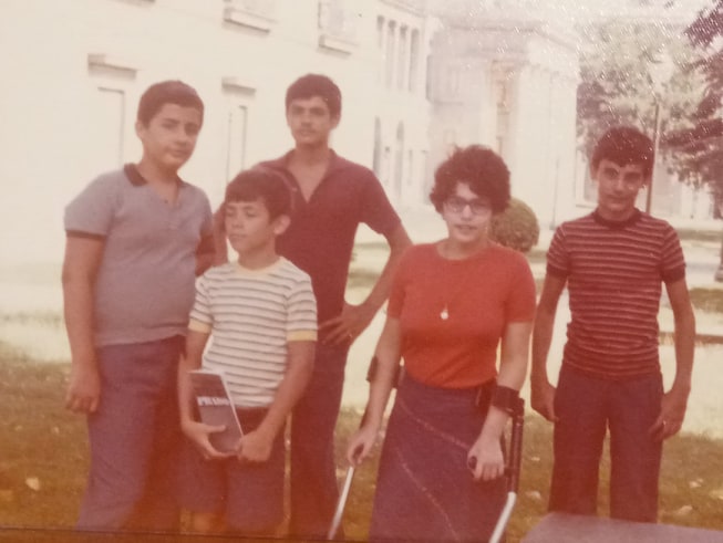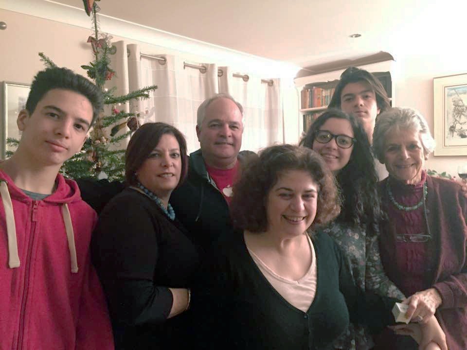 A su izquierda sus sobrinos Estephania y Luca y su madre, Susan. Año 2016.