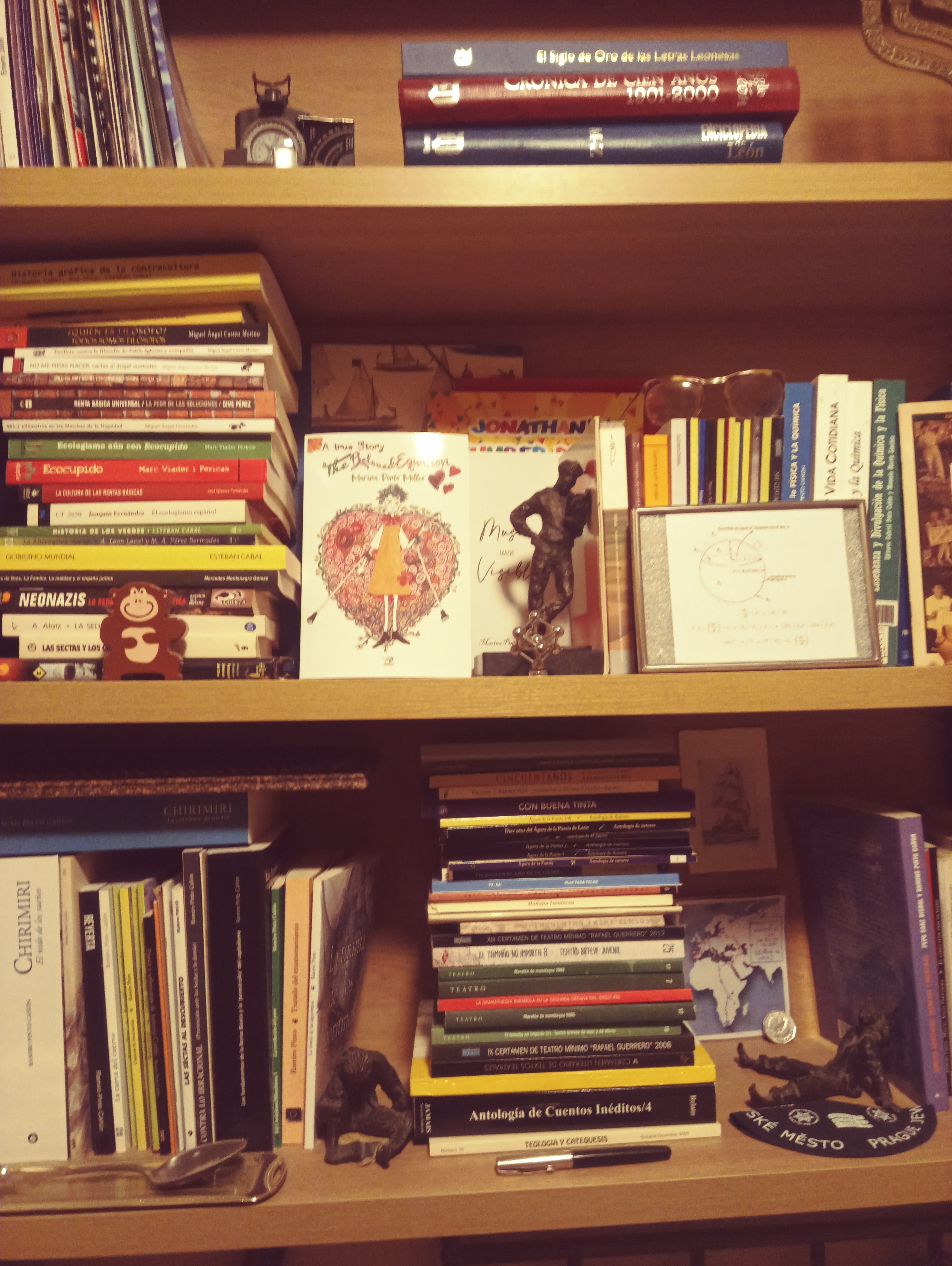 Los libros de Marina y su tesis en el museo Pinto. De momento una estantería,