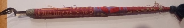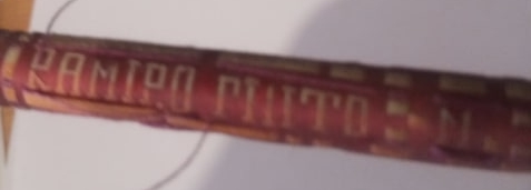 Durante su estancia en la cárcel hizo, pues era una labor de los presos, un plumín forrado con hilos, que pensó dejar de recuerdo: Ramiro Pinto M. – A su esposa e hijos – San Marcos, 1936.