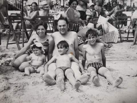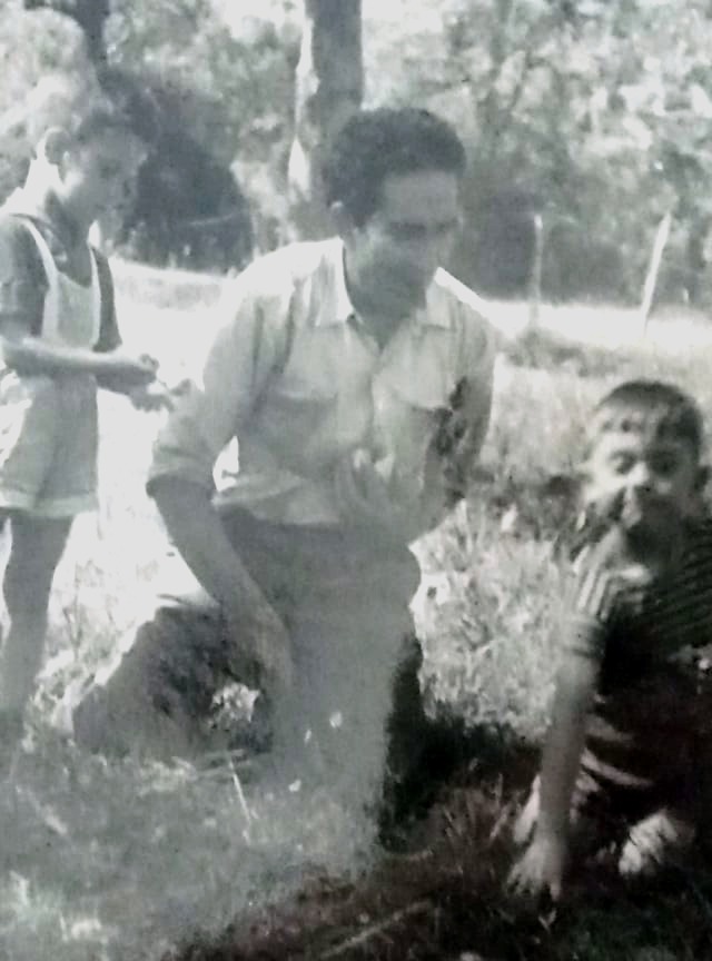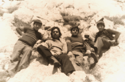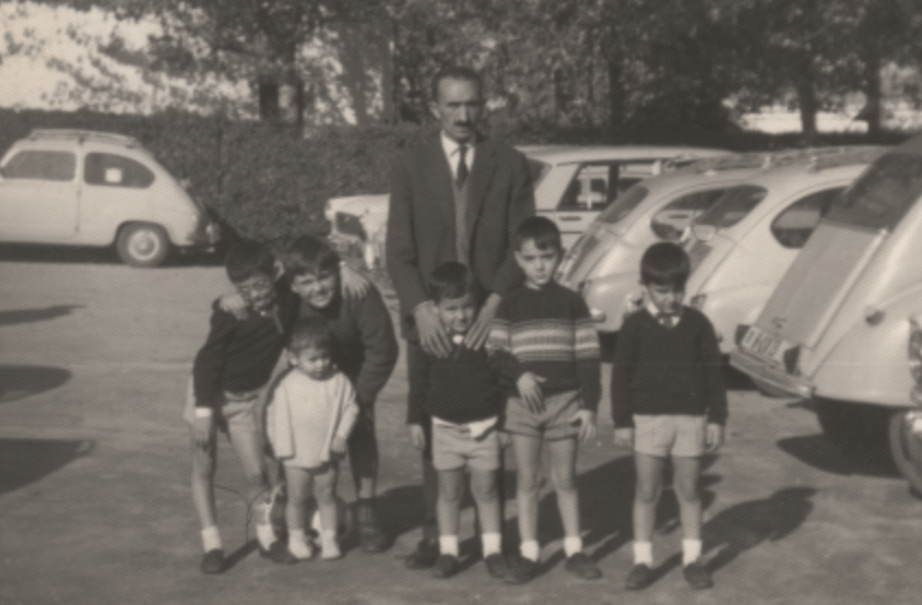 A su lado un hermano de éste y debajo, con gafas, otro.