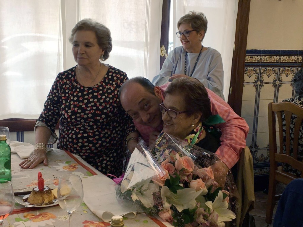 En Madrid, en casa de su sobrino Ramirín. Con Loly, César a su derecha