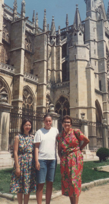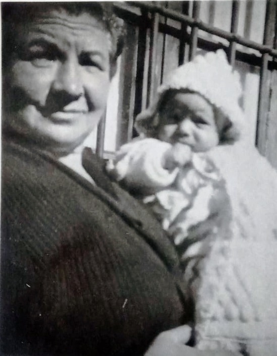 (Con Rayo en brazos. Con Loly y con Yolanda. En la última con Elsa en brazos, (año 1999) de fondo el primer cuadro que pintó, en casa donde vivían con la tía Lola. Ante la catedral con Yolanda Prieto y Elena Pulido.