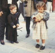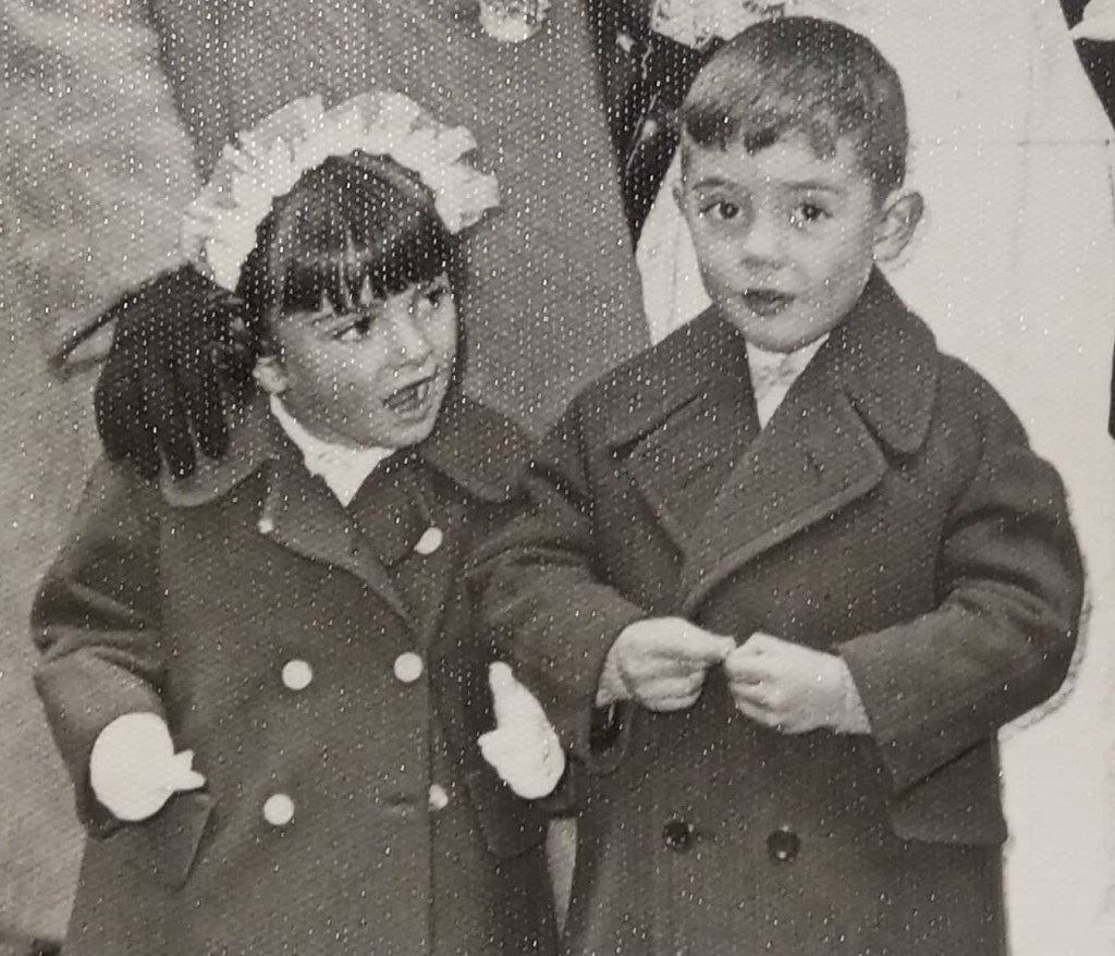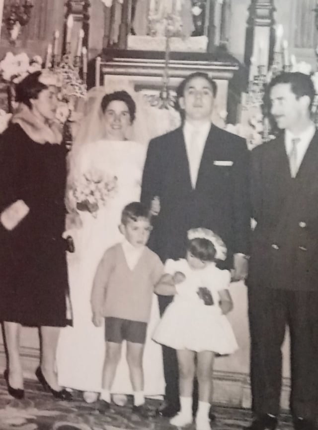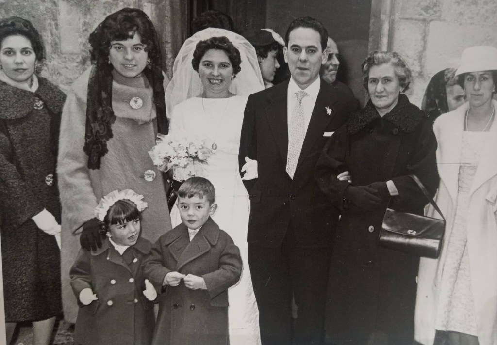 Belén con su primo Andresín el día de la boda de su hermana Begoña. Año 1959.