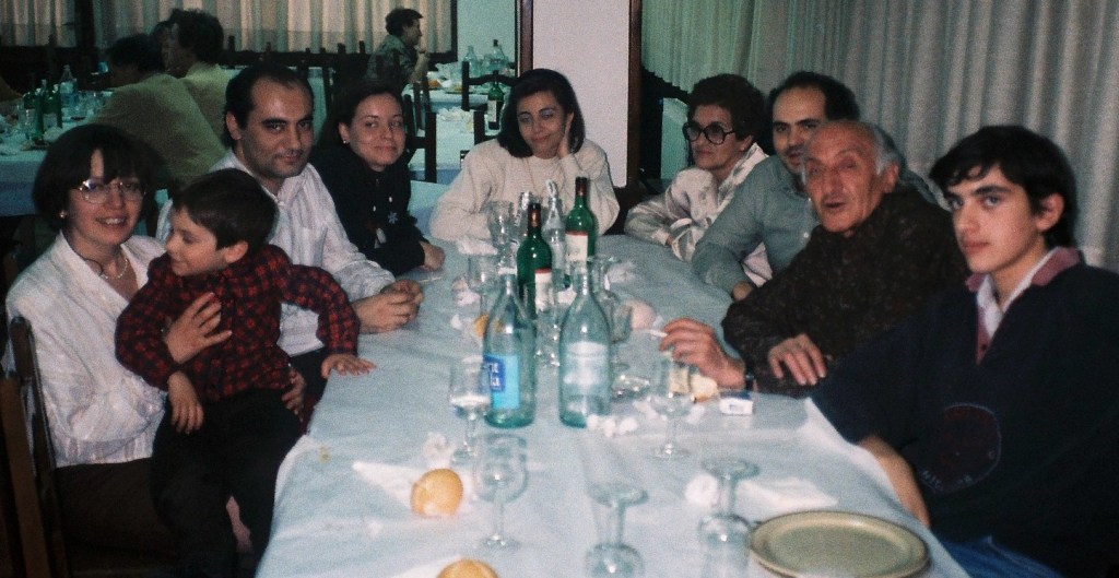 Isidoro con la nieta de su sobrino Ramiro Pinto: Daira, en el chalé de Los Pinto en Moralzarzal – Madrid (año 1994). La foto , 1989, con Rayo en la mesa, a su derecha Lolita, la esposa de Ramiro Pinto Díez, que está el otro extremo, Loly y José. A su izquierda : César, Mity con su pareja detrás, Yolanda, y la de Gaby (autor de la foto): Elena. Con Rayo y Omar en brazos de Elena en el parador de San Marcos. Junto a Miry y su hermana Lucy y Yolanda con sus dos hijos, Rayo y Omar. Y con Miry en el obispado, cuando en la calle Ancha circulaban coches. En el jardín del chalé de Los Pinto con su sobrino Ramirín y el nieto de éste, Rayo (año 1990)