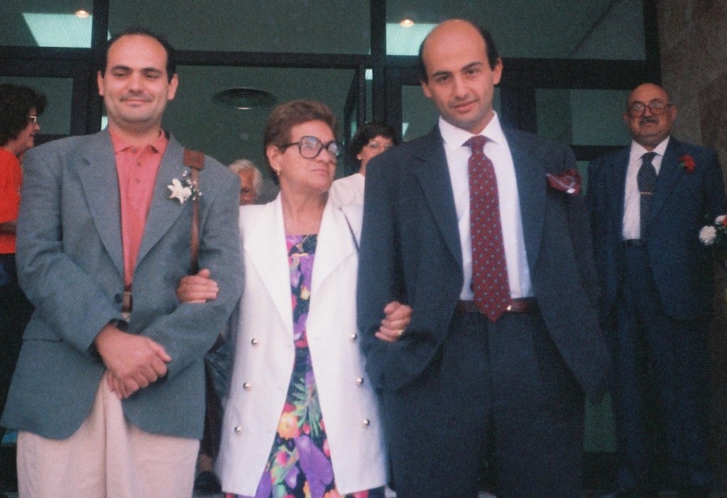 En la boda de Miry y Yolanda, año 1992. El novio a su derecha, a la izquierda Jose. Los ojos de Yolanda detrás y al fondo a la derecha de la foto el padre del novio.