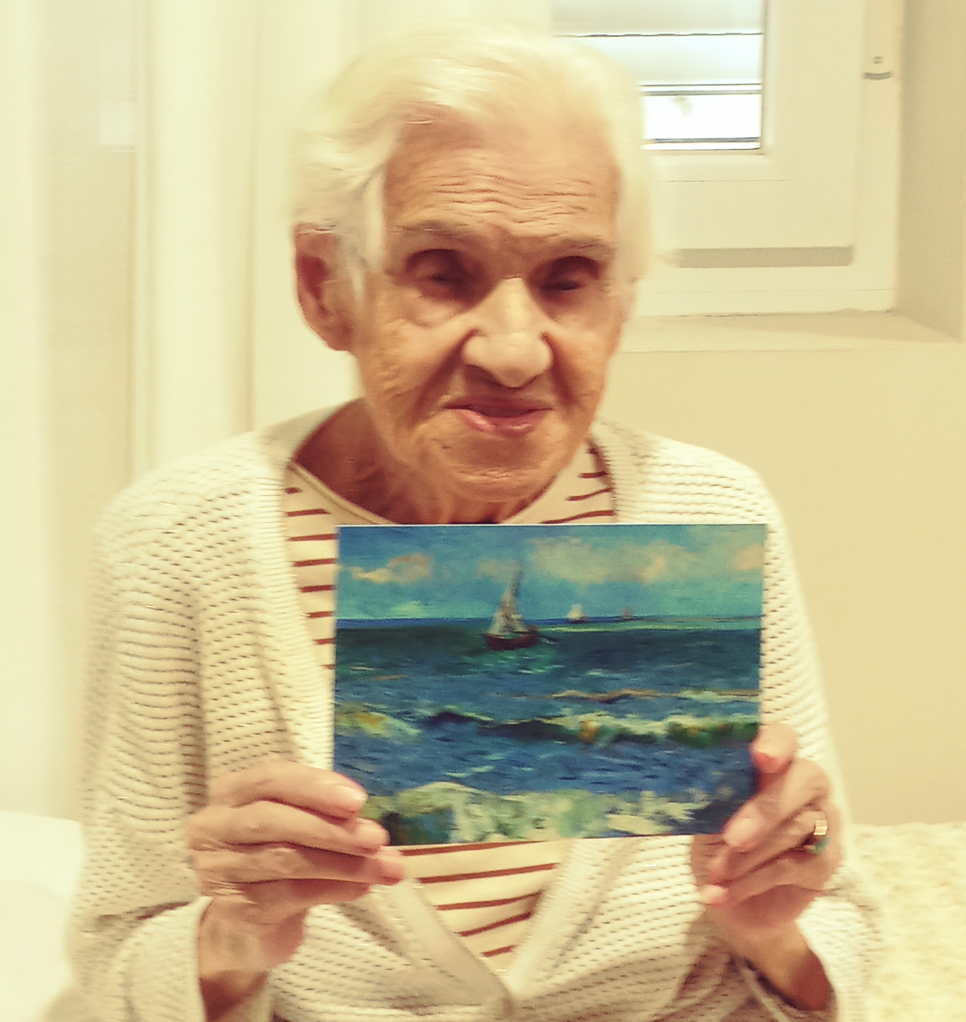 En junio de 2023 Ramiro y Yolanda estuvieron en Amsterdam. La tía Lucy estaba muy ilusionada en que fueran a visitar el museo de Van Gogh. Ella les había regalado una copia del cuadro del barco, en el que es muy importante la línea roja en la nave y la firma, pues hace que el cuadro se vea de una manera más nítida. Y tiene granos de arena incrustados,