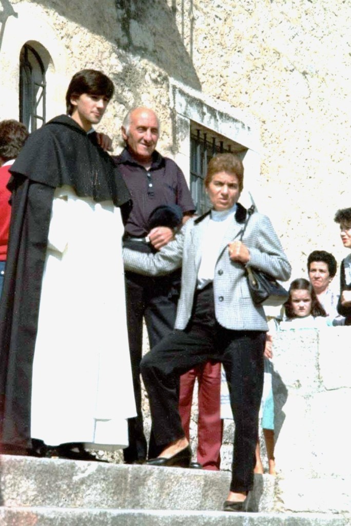 Miguel Ángel con los hábitos de dominico, con la tía Lucy y el tío Isidoro.