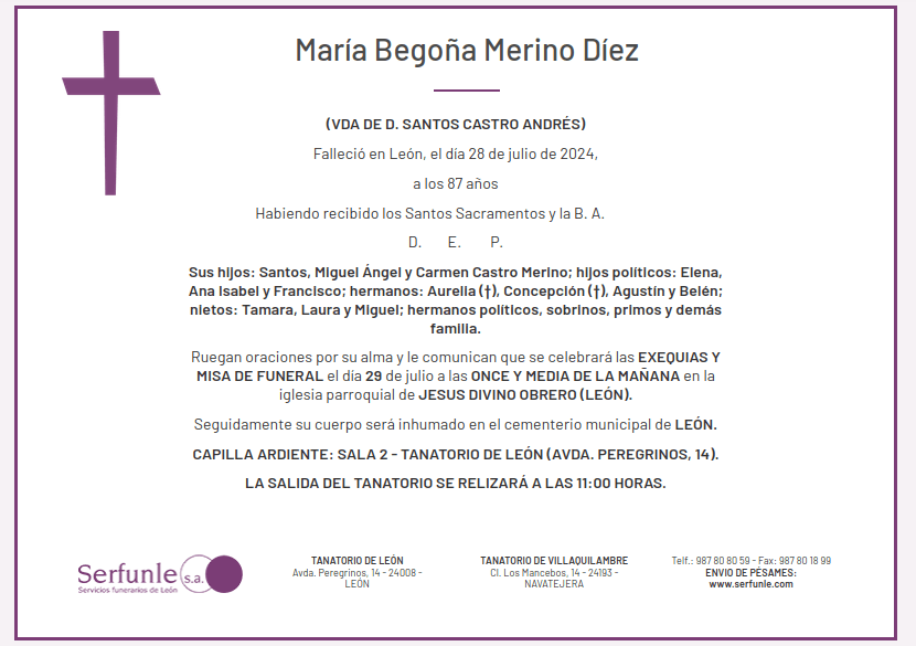 – Aurelia Merino Díez (Turi), casada con Pedro Sánchez de Diego. Se fue a vivir a Bélgica. Cuando se jubiló vino a vivir a León. Un día apareció muerta, de repente, en su casa, encontrándola Lucy, que se extrañó de no verla aquel día. Fue el año 2009.