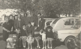 El tío Agustín con sus sobrinos nietos. Delante de él Jose Luis Pinto, a la derecha Goyín Modino Pinto, Gabriel Pinto. A la izquierda Andresín abrazado a Miry (Ramiro Pinto, haciendo el tonto)