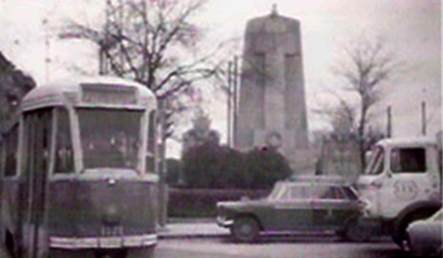 Años 60. Con tranvía. Plaza de la Cruz de los Caídos.