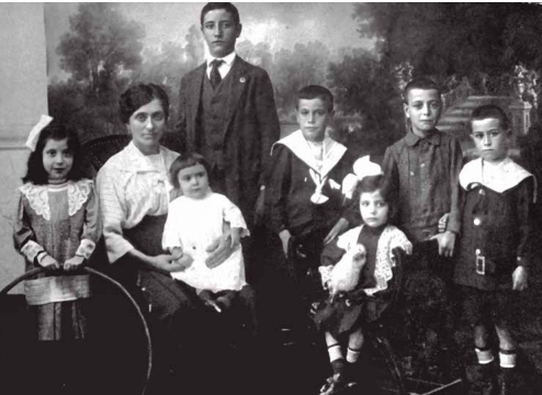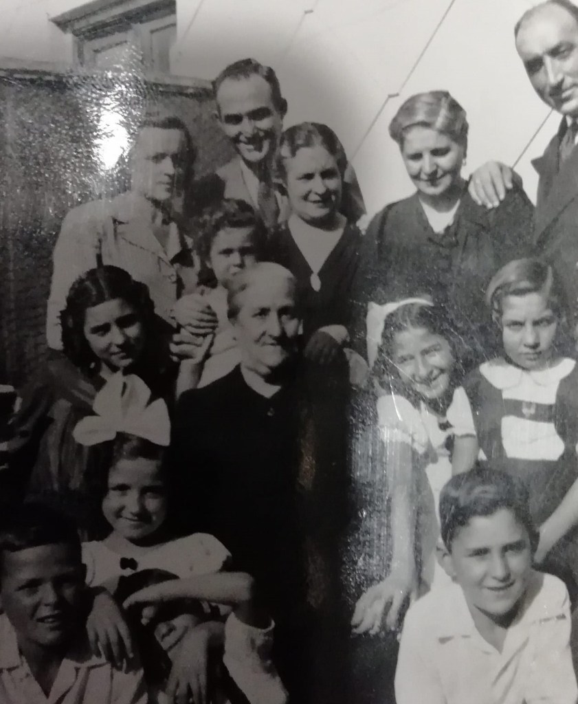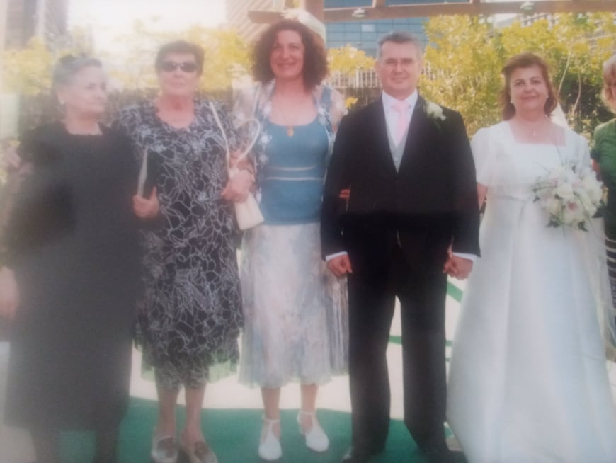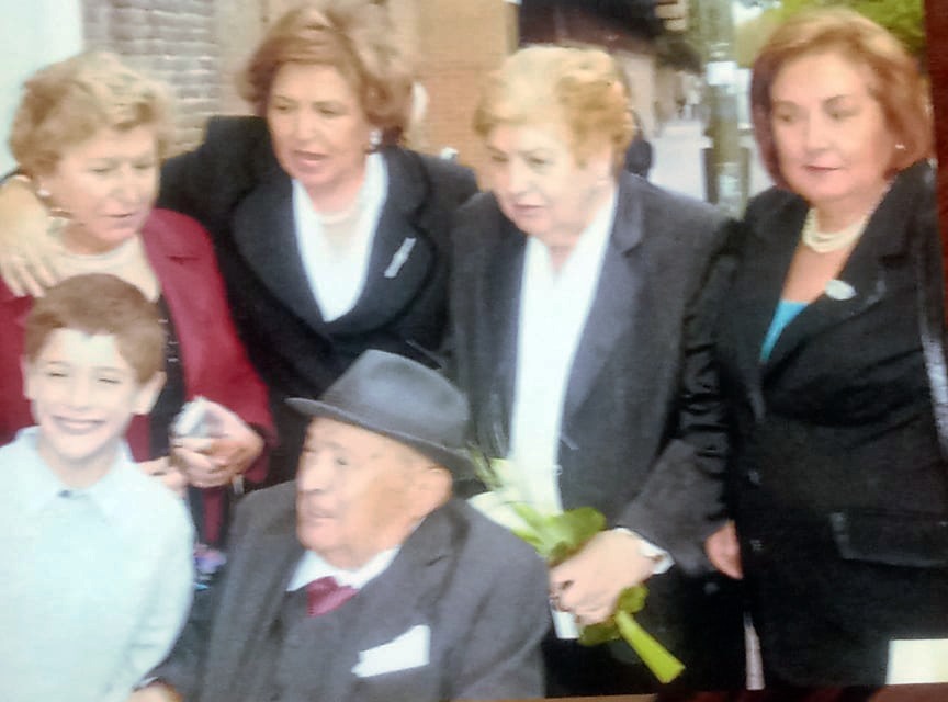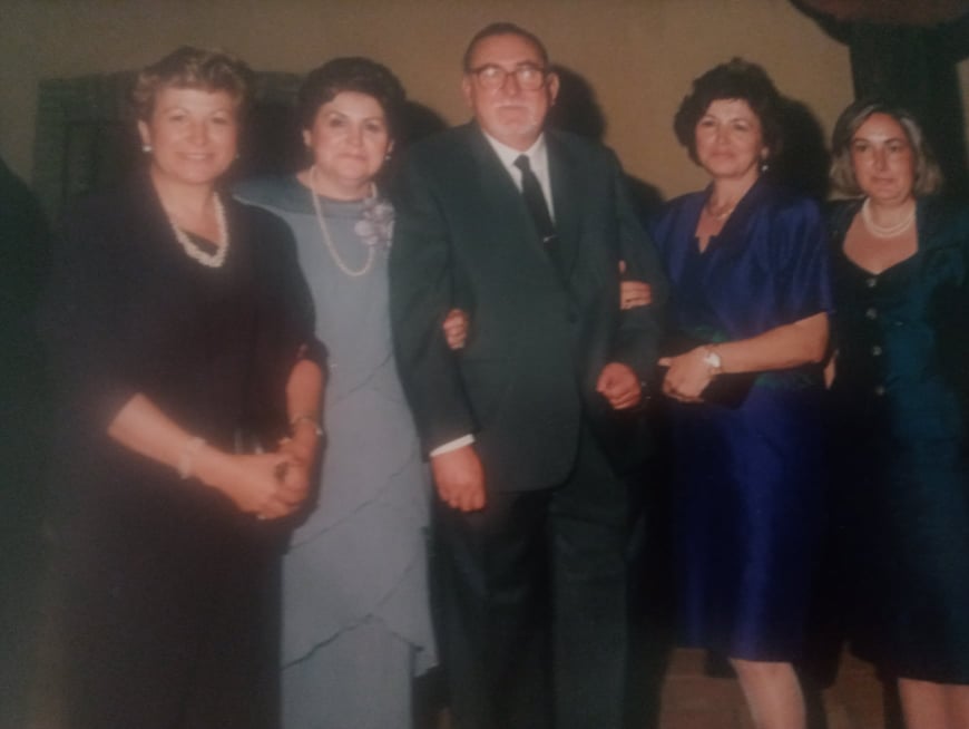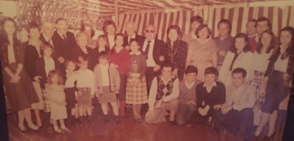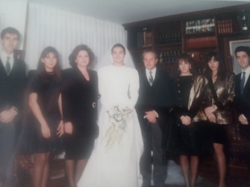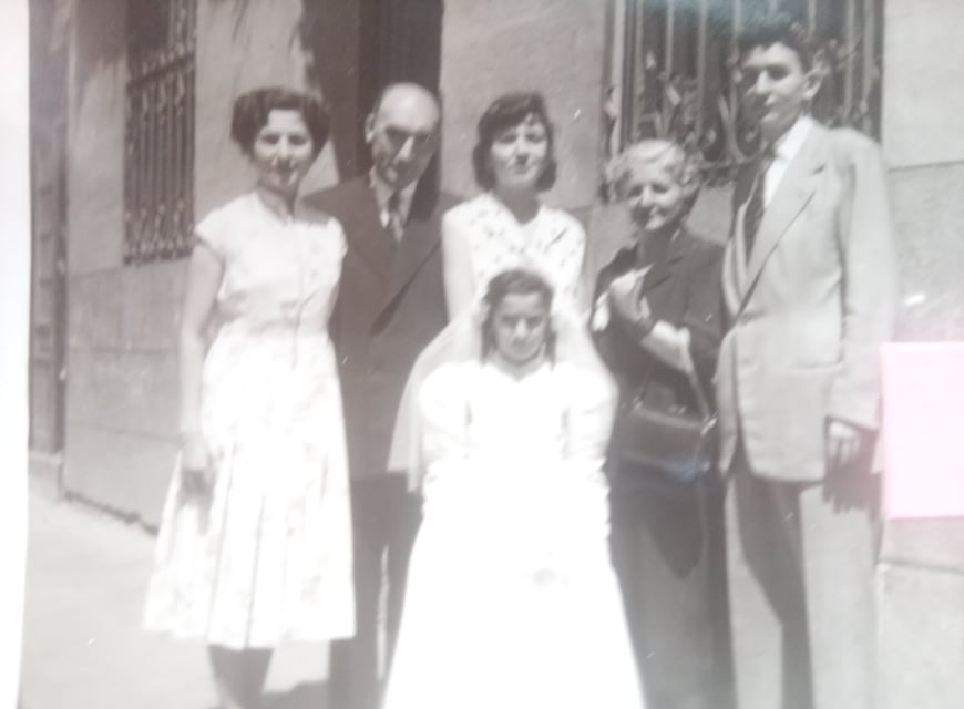 A su derecha mi madre, detrás Loly, a su lado Jose, junto a mi padre,