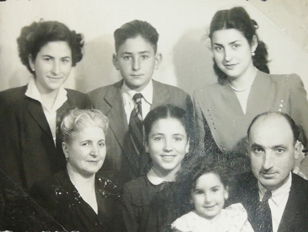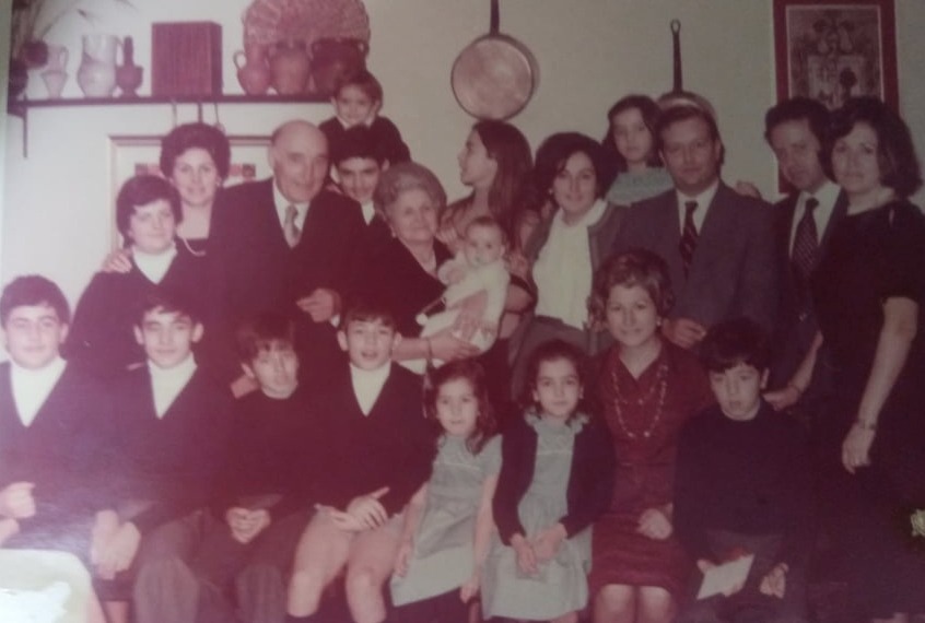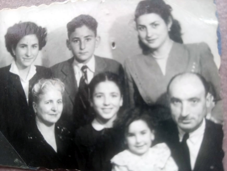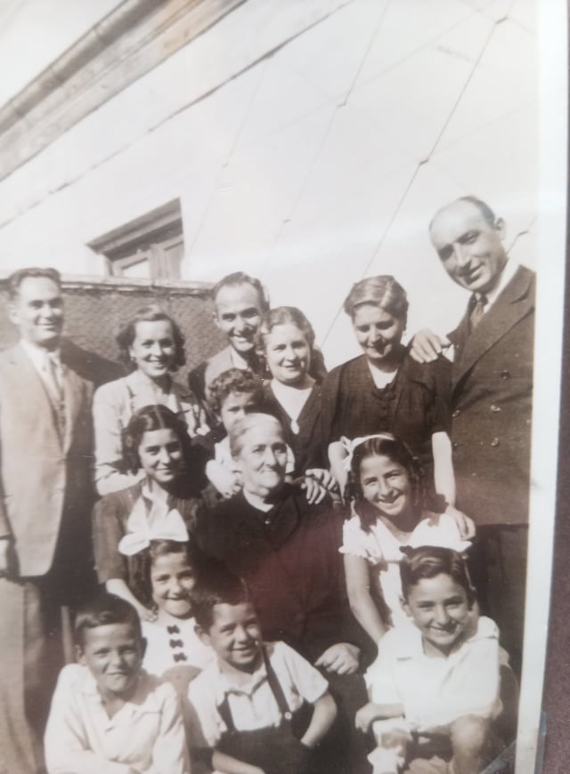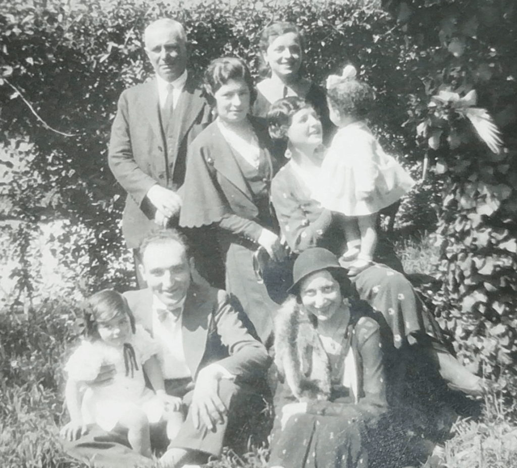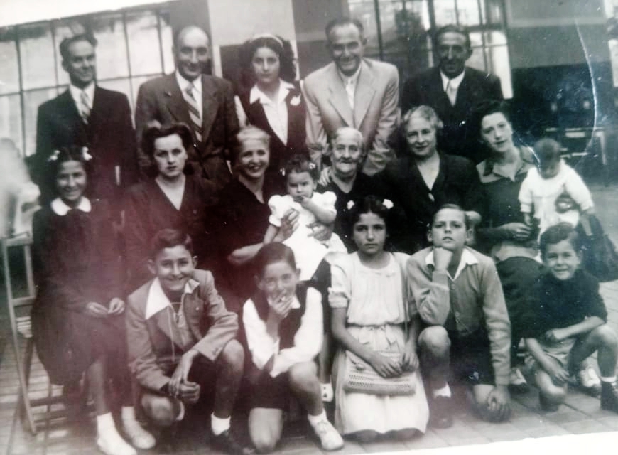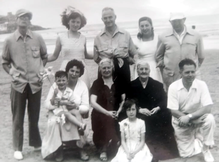 A su derecha mi madre, detrás Loly, a su lado Jose, junto a mi padre,