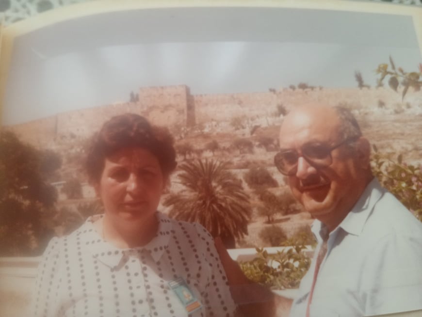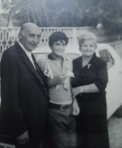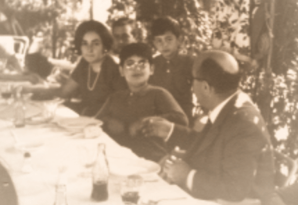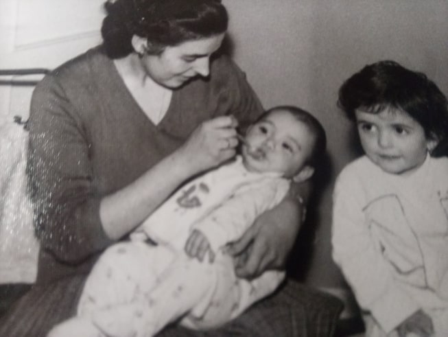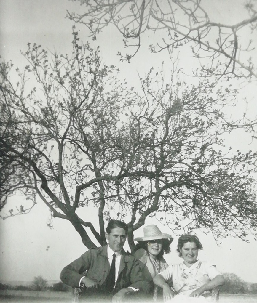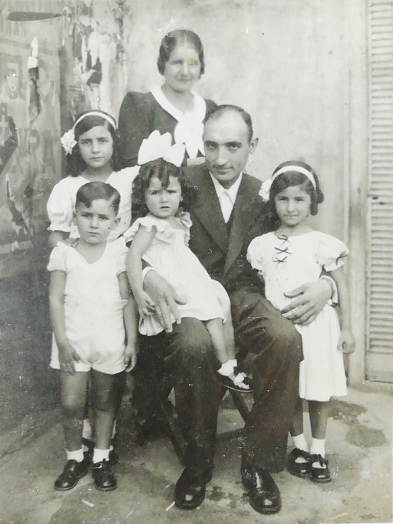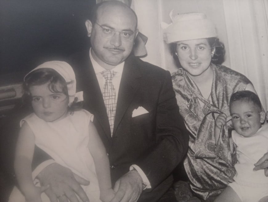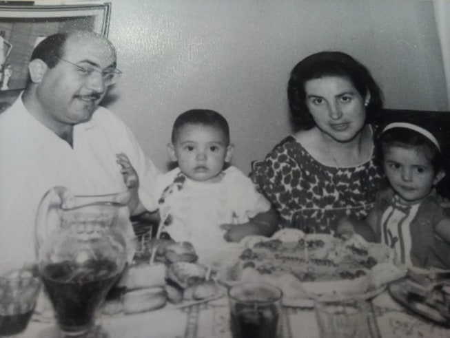 Loly asomándose para no perderse nada, nuestro padre al lado y mamá, Lola Cañón. Detrás de Jose se ve asomarse a Estrellita.