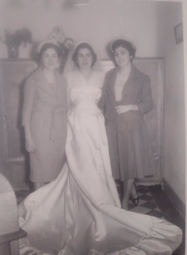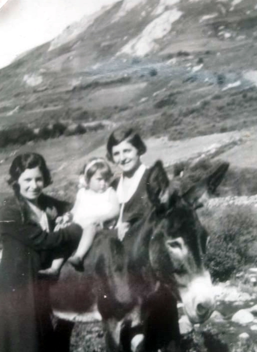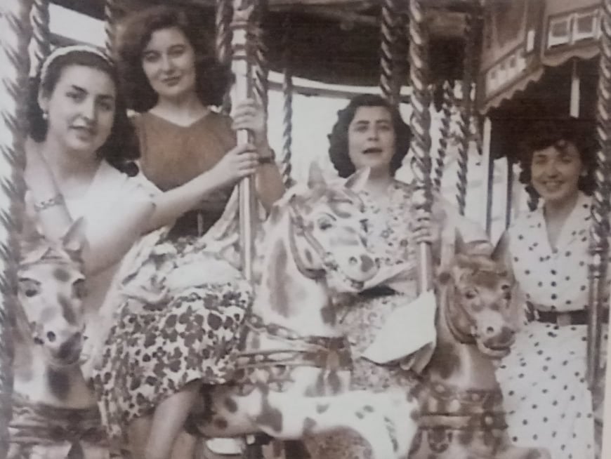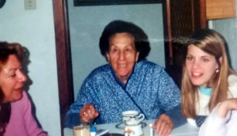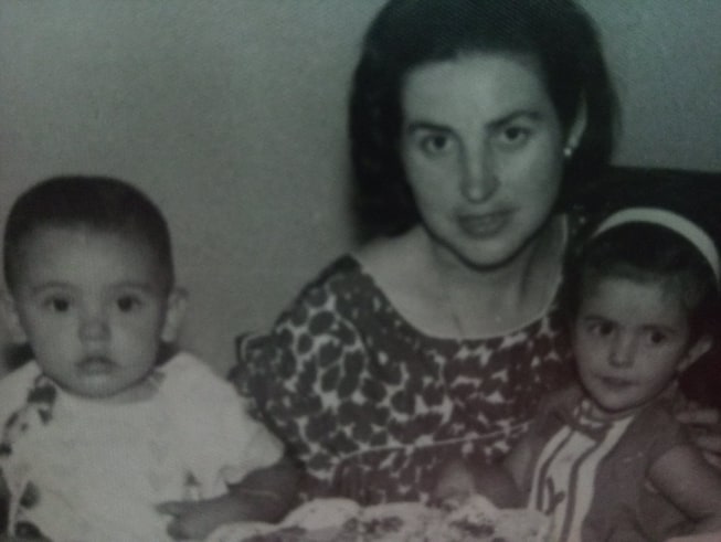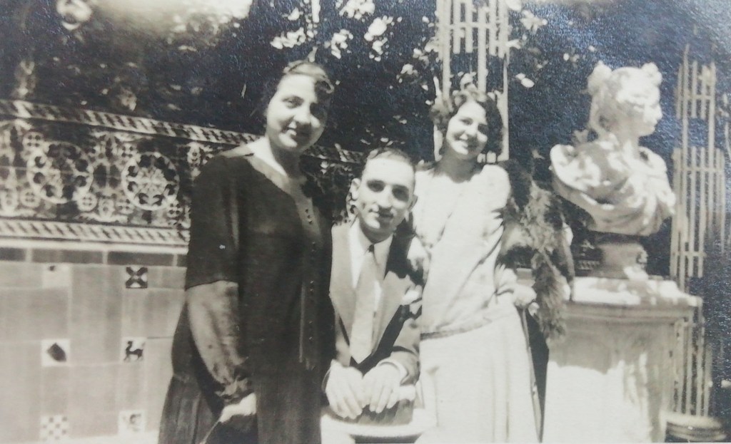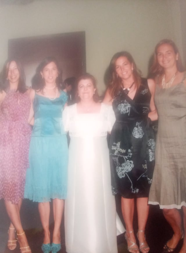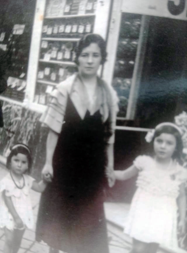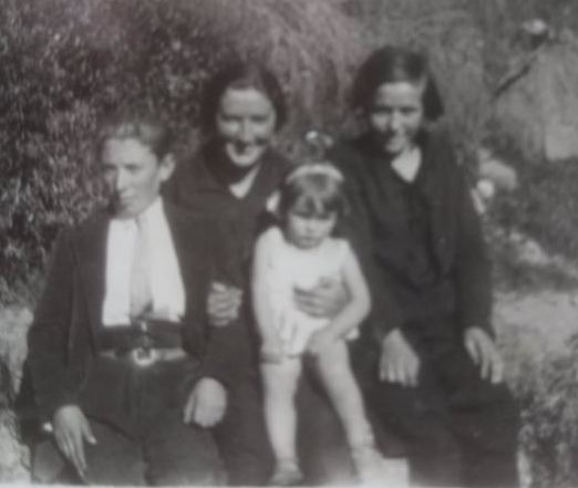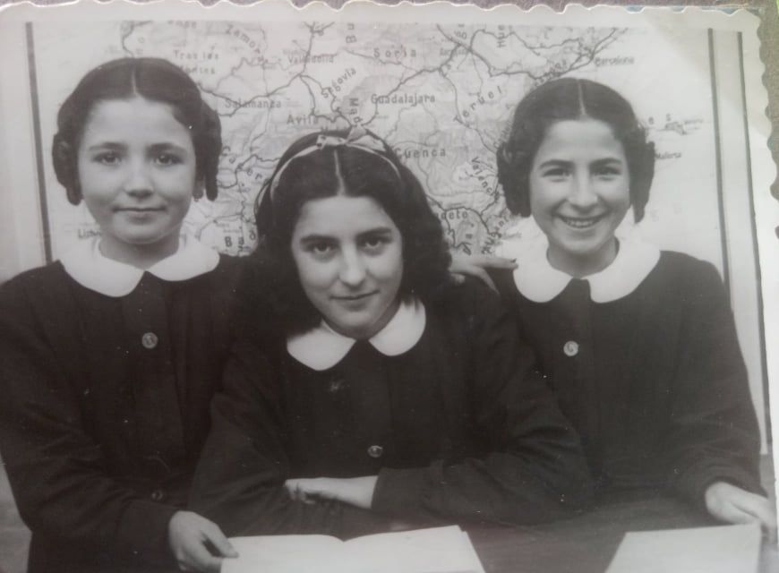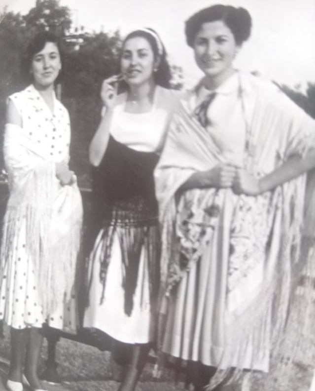 y al otro lado su hermana Marta. En el medio su prima Loly.