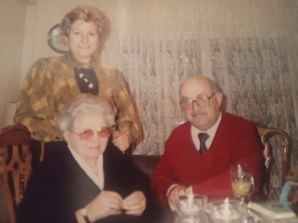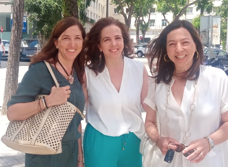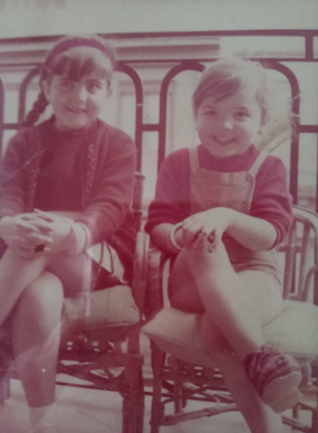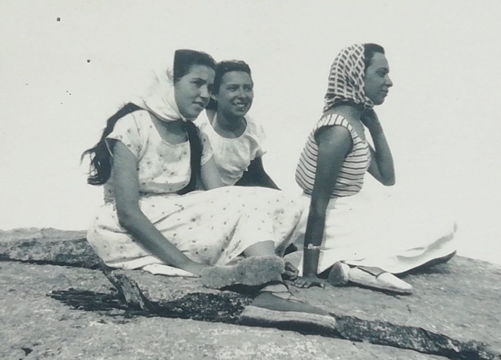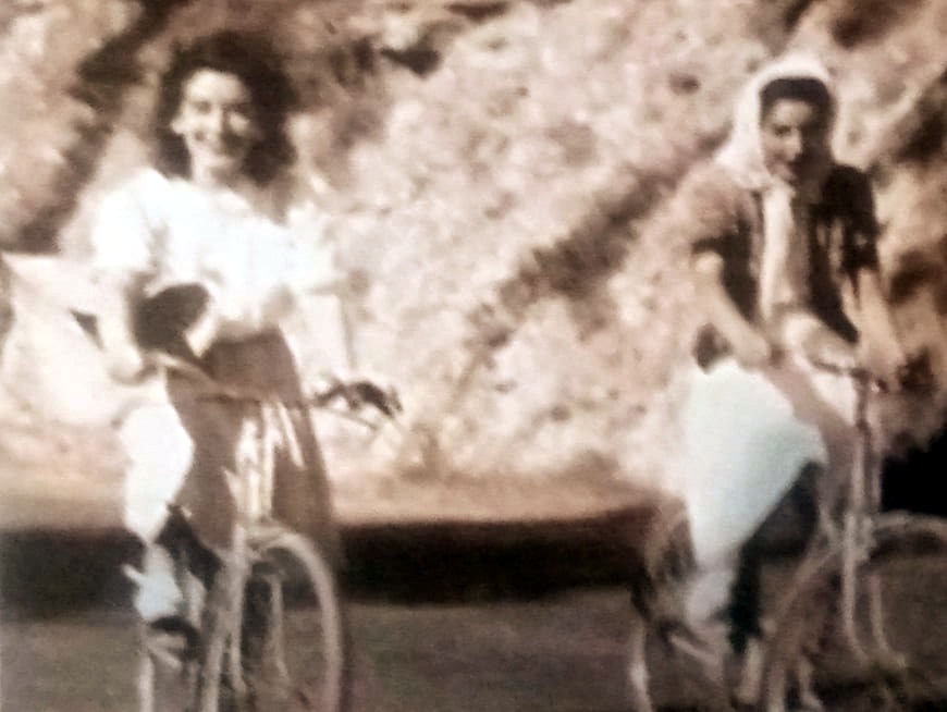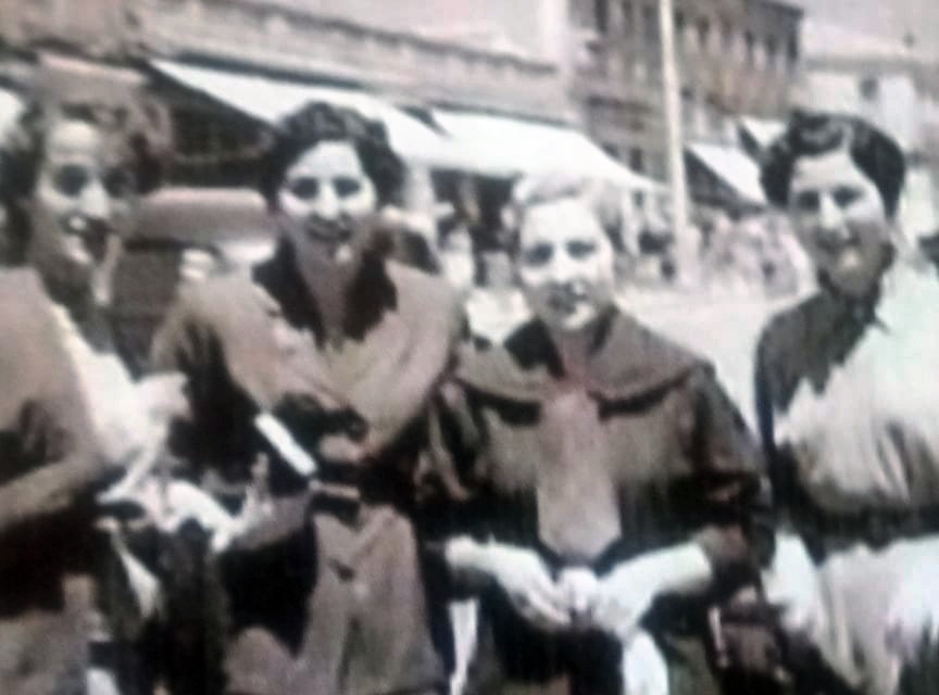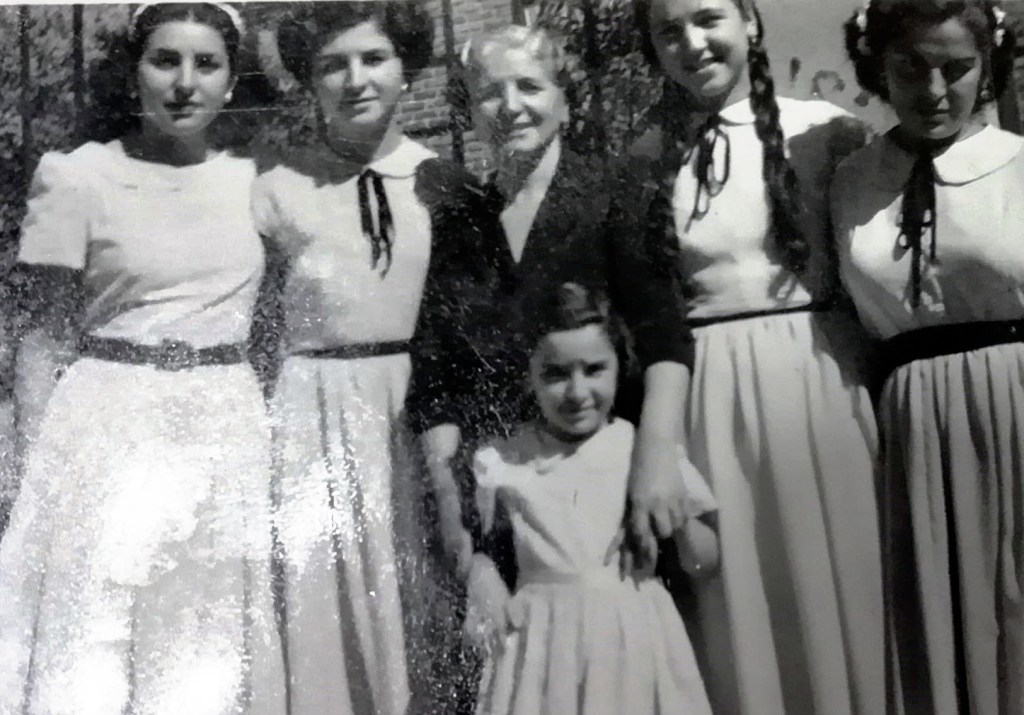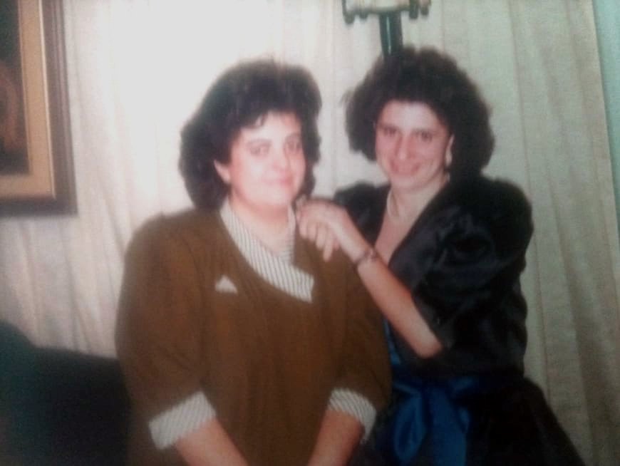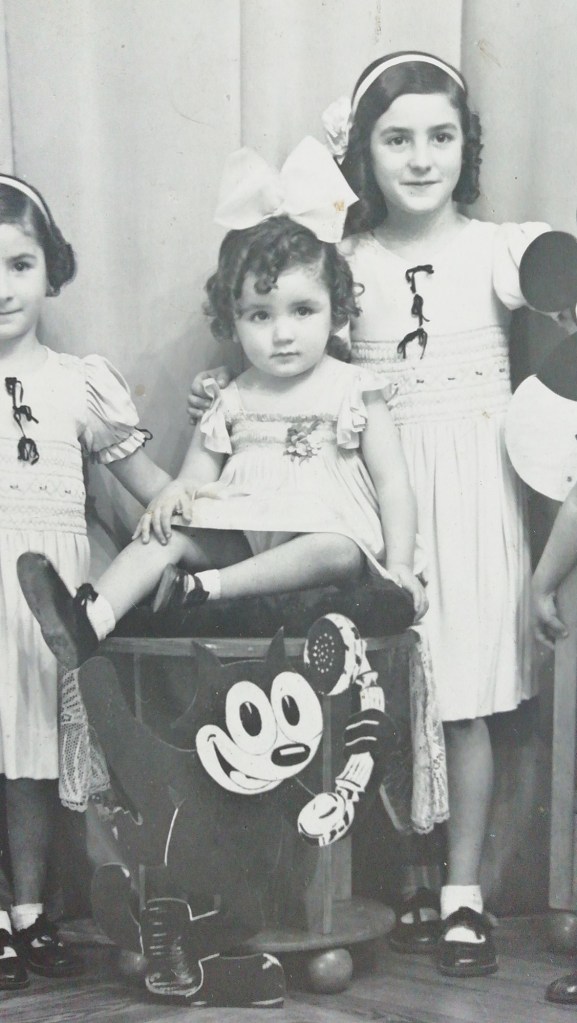 y al otro lado su hermana Marta. En el medio su prima Loly.