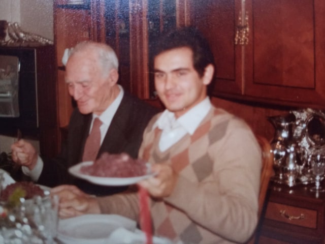 Era de buen comer, siempre lo fue. Contaba que una vez en un bar pidió una ración de churros para tomar con el café. El camarero le puso una bandeja para que cogiera dos o tres, pero él pensó que era la ración y se los comió todos. Lo recuerda en ocasiones su prima Pachi. También recordaba mi padre cuando una vez iba con el suyo a coger el metro. Llevaban una sandia enorme y no les dejaron pasar con ella. Se pusieron mano a mano y se la zamparon entre los dos. Le encantaban los percebes, que decía que era una comida de pobres y al paso de los años era de lujo.