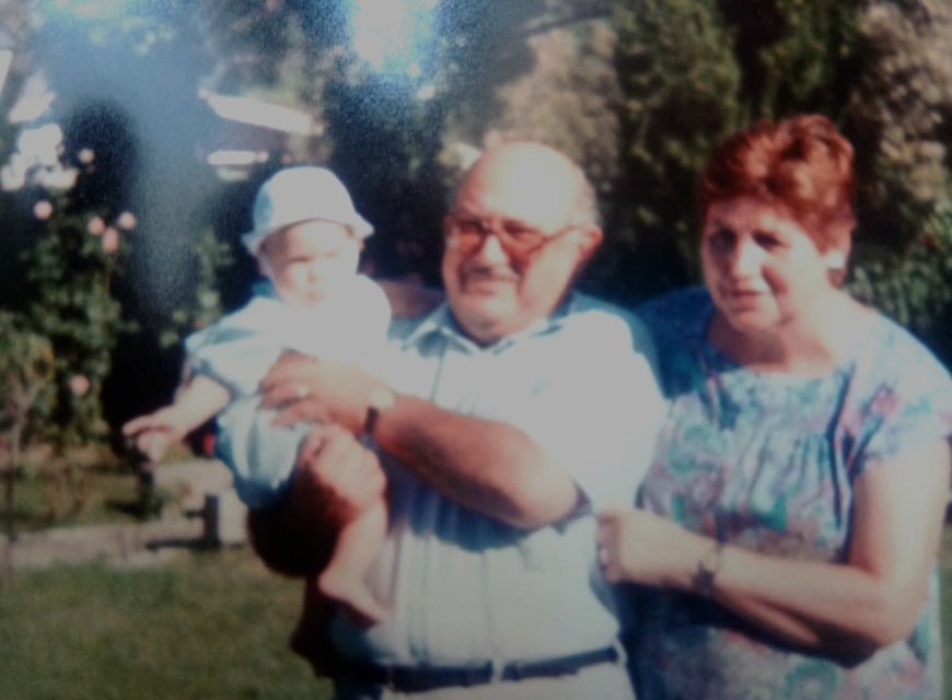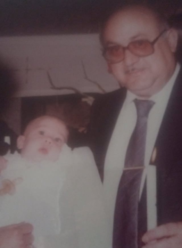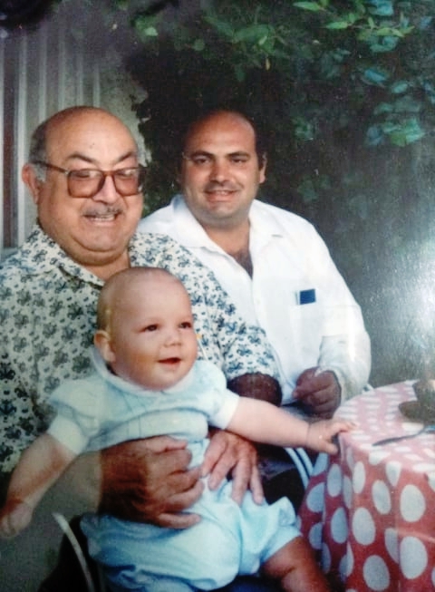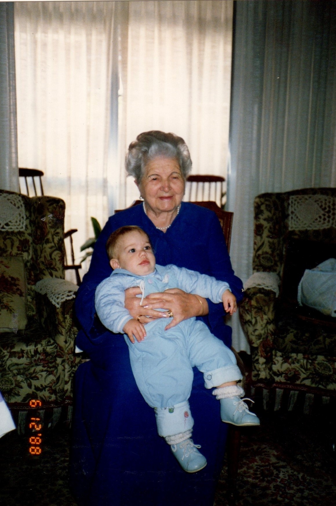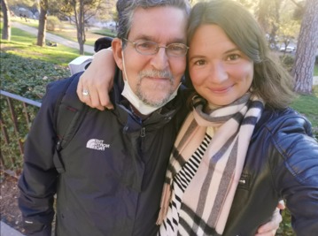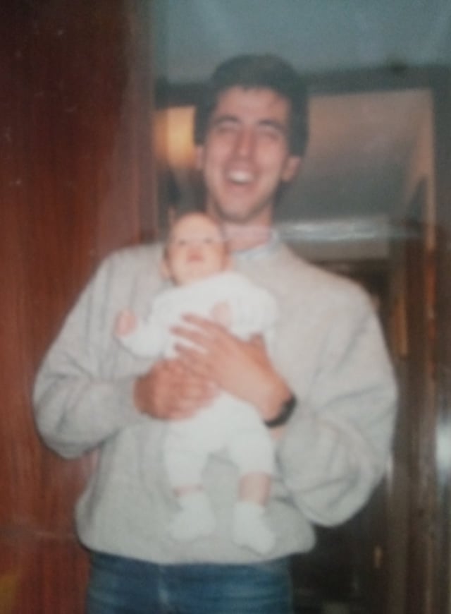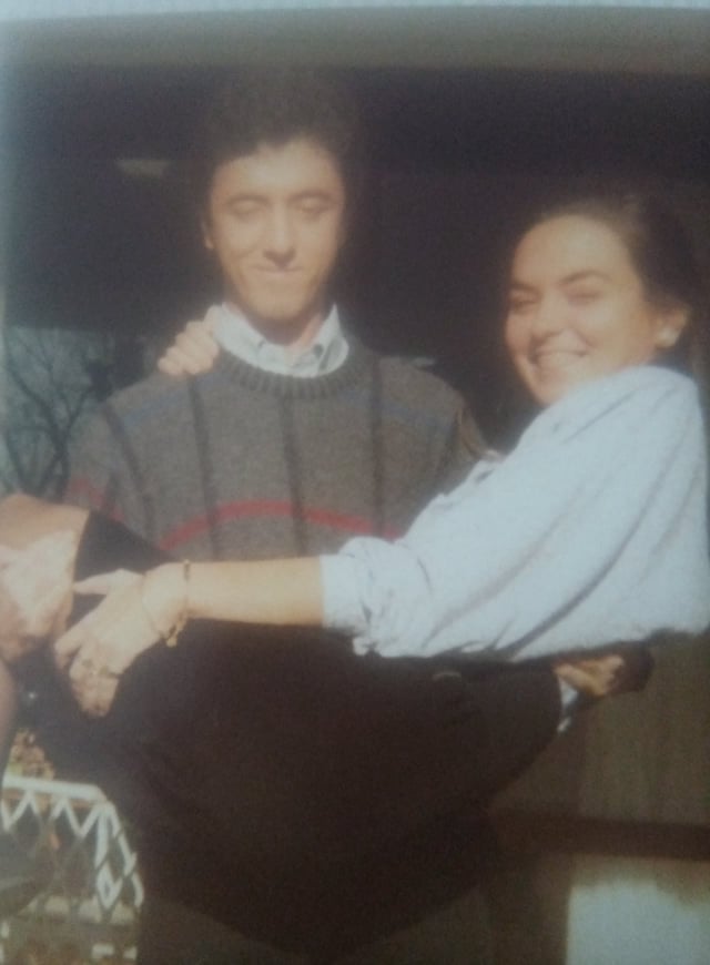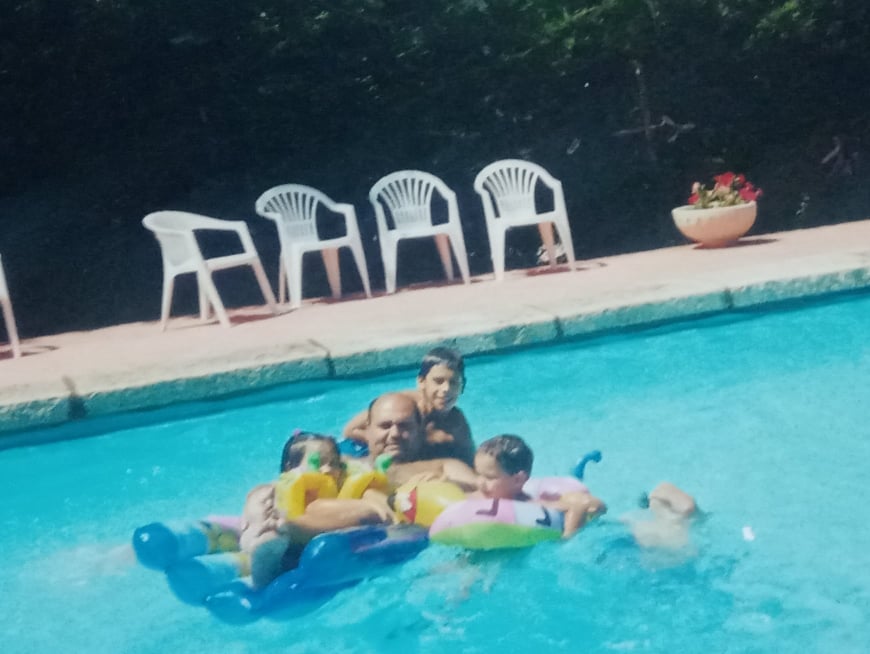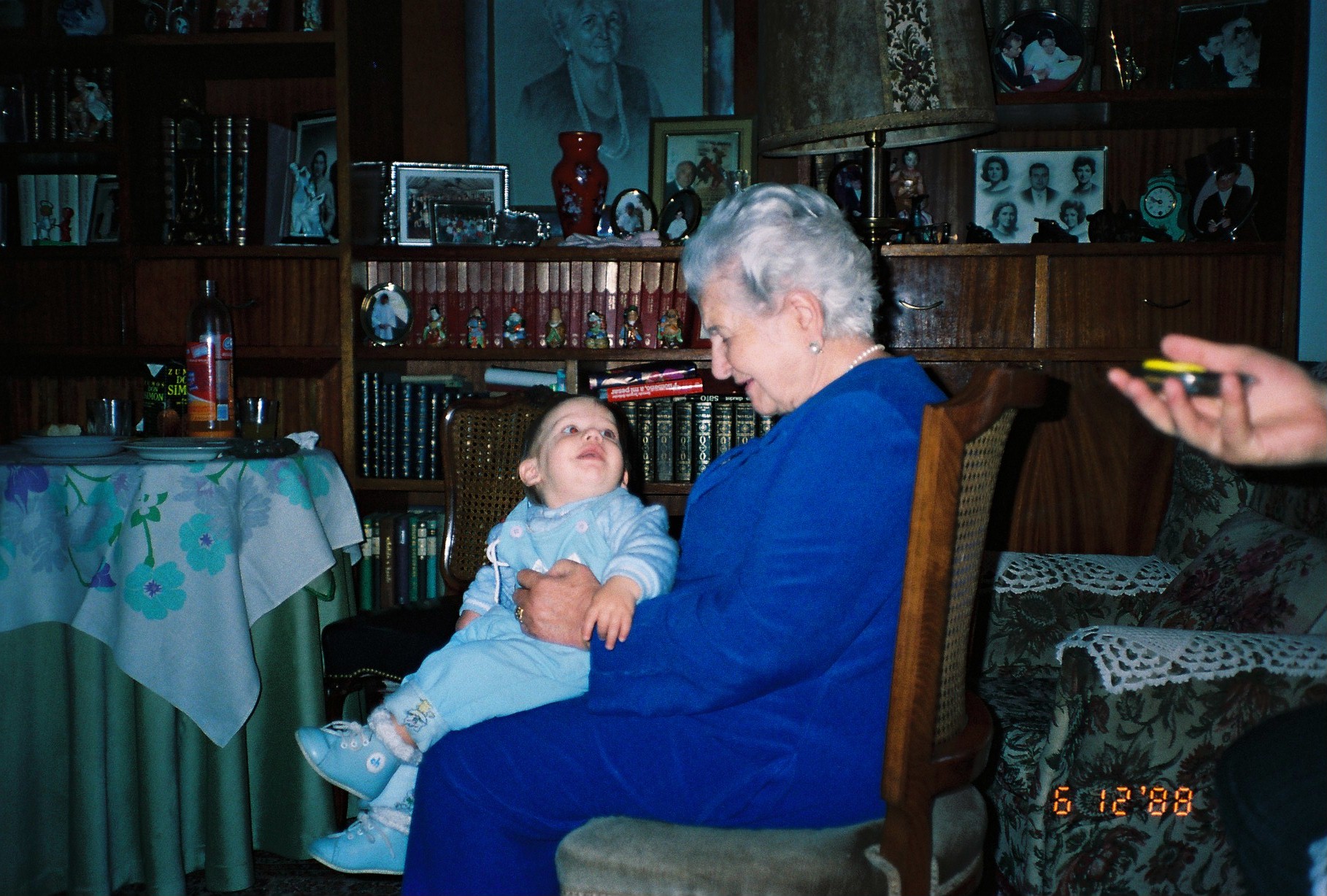 Sobre sus hombros Cristina, la hija de Ricardo, primo de mi padre, que vino desde Cánada.