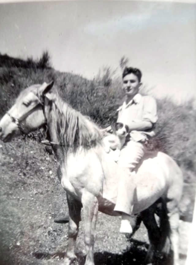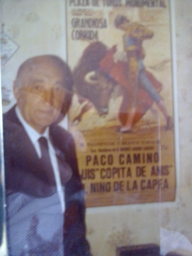 Cuando empezó la guerra tenía ocho años. Pasó mucho miedo y se metía debajo de la mesa de la cocina y decía, «que vienen los fascistas y nos matan». A medida que avanzó la contienda, hizo lo mismo, pero le daba miedo los del otro bando: «Que vienen los rojos», decía. Contaba la tía Lola que era muy miedoso. Él le echaba en cara (bromeando) que ella le asustaba cuando fue pequeño. Decía conjuros y contaba historia de espíritus y de lobos que corrían por la calle. Le decía a la tía Lola (cariñosamente) que cuando fue joven era malona. Uno de los repertorios de ella fue «Patas blancas, patas blancas, sal de debajo de la cama si no te espantas».