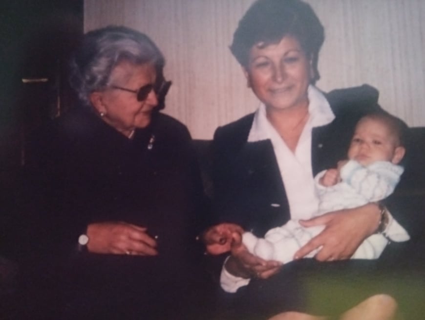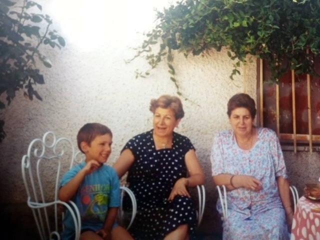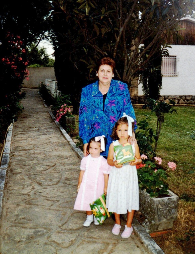 Ana, a la derecha, con su abuela Lola y su primo Miry