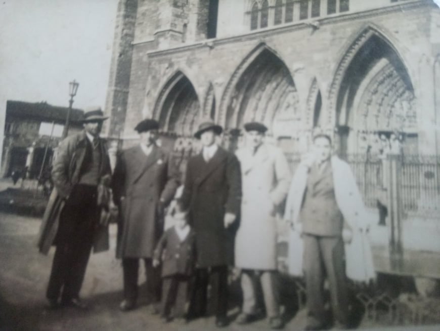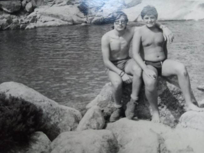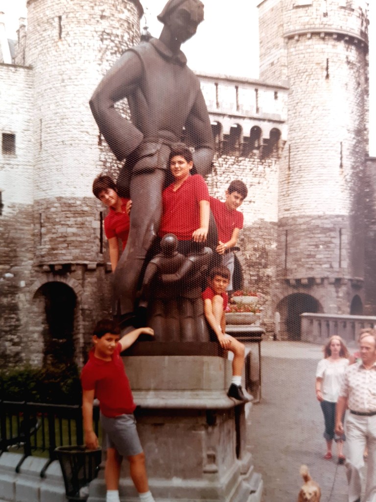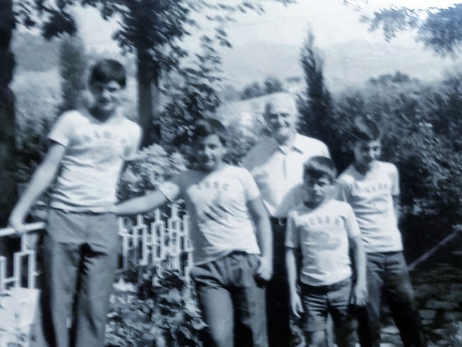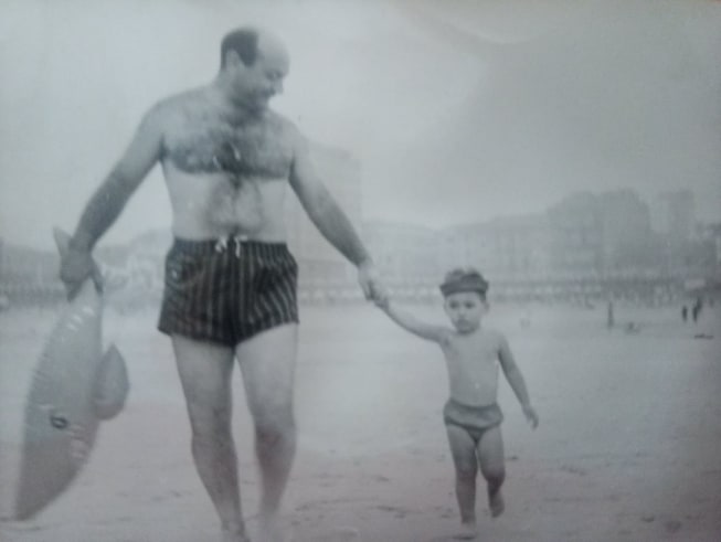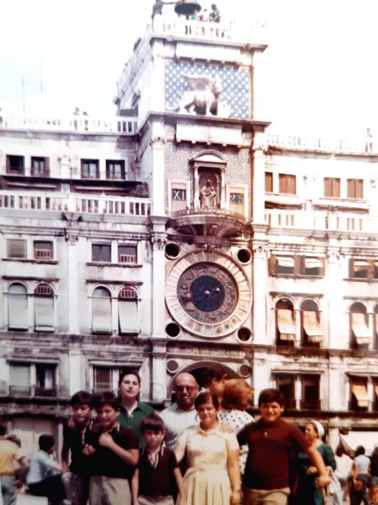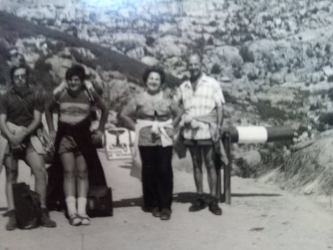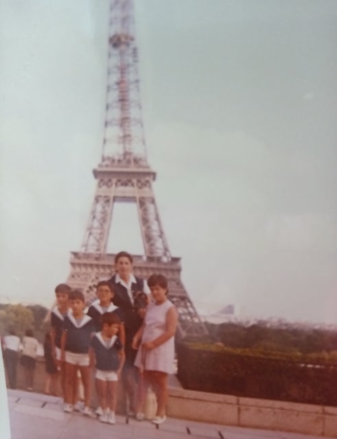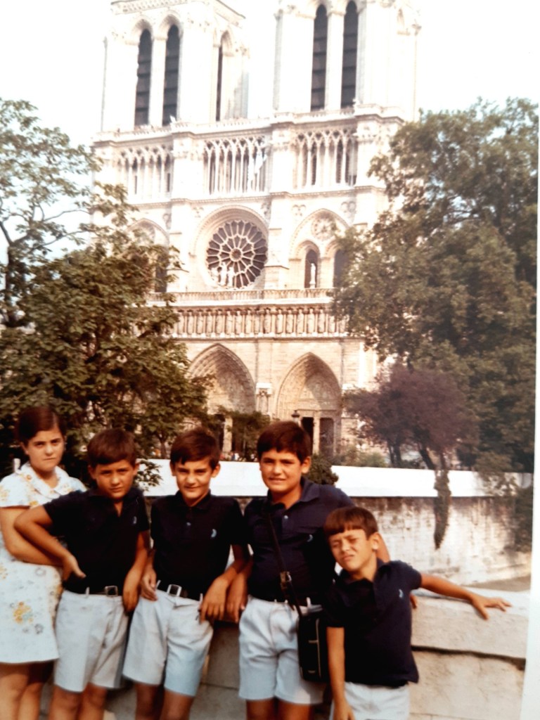 Durante varios años, siendo mis hermanos y yo pequeños y luego adolescentes, nos llevaron a todos juntos de viaje al extranjero, en esas excursiones colectivas que se empezaron a hacer. Íbamos en autobús y en muchas ocasiones cantábamos, porque siempre había alguien que animaba el cotarro. Se hacían muchas amistades, que daban en volverse a ver, mis padres siempre se despedían con abrazos, pero nunca volvíamos a vernos, salvo una excepción. Mi padre hacía películas, que a mí me aburría porque siempre salíamos andando delante de un monumento o un paisaje. Yo hacía el tonto para no repetir siempre lo mismo. Fuimos que recuerde de Gira por Francia, hasta París.