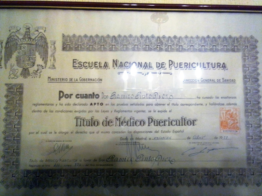 De familia humilde estudió la carrera de Medicina. Primero en Atocha, donde también estudió Gregorio Modino, Goyo, quien luego sería su cuñado. Hizo las prácticas en el Clínico (Hospital Clínico San Carlos), en la plaza Cristo Rey, del barrio de Moncloa. El rey Alfonso XIII mandó hacer la Ciudad Universitaria al poco tiempo. Adquiere el título el año 1952. En el BOE, 31 – XII – 1955, aparece que aprobó las oposiciones libres para su ingreso en el Cuerpo de Médicos, el titulo para provisión de plantilla. Grado: Diplomado. (A varios compañeros les faltaba el certificado de buena conducta.) Desde entonces fue el Doctor Pinto, que es cómo le oí llamar por regla general. Y a mí el hijo del doctor Pinto.