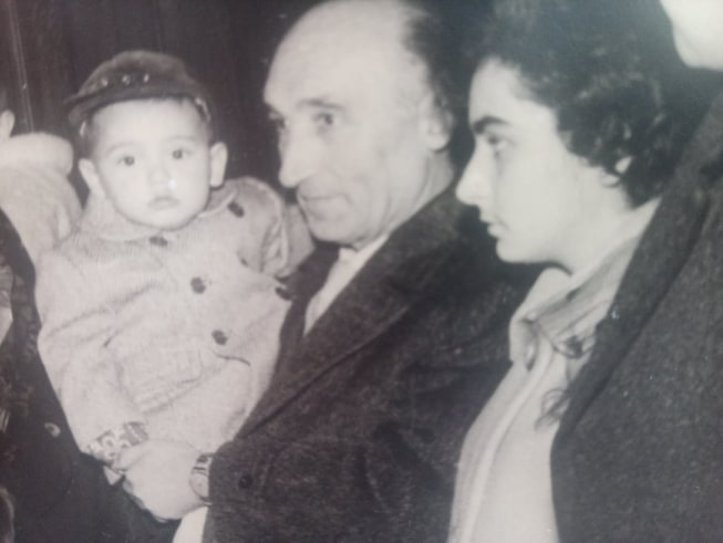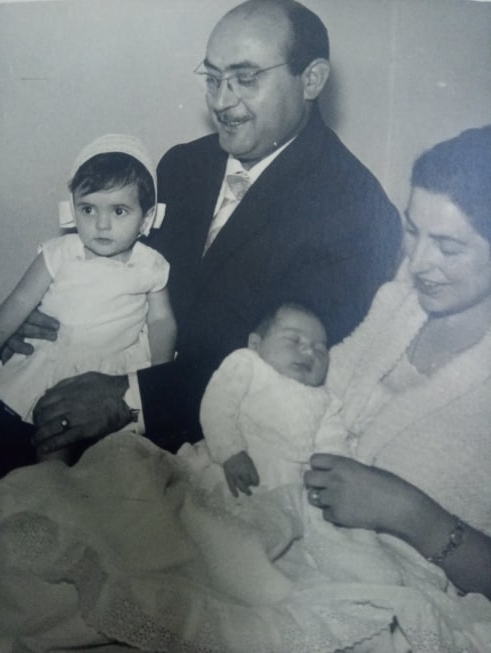 Mi hermana Loly en brazos de papá. Hospital de La Milagrosa – Madrid