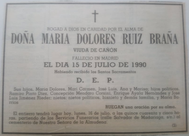 Las familias son también su contexto y forman parte de lo vivido. Y son pistas para el día de mañana, porque se pueden encontrar curiosas relaciones en un futuro. No se trata de algo biográfico, sino de la memoria y como tal es algo difuso. Al menos que permanezcan los nombres en el mundo de internet, ya que en las sepulturas poco queda, el único lugar donde se resguardaban a la vista del paso del tiempo: los apellidos familiares. Las asistentas que tuvimos fueron Carmen, una joven con la que mis padres viajaban para ir a Denia o a Gijón y ayudar a mis padres.