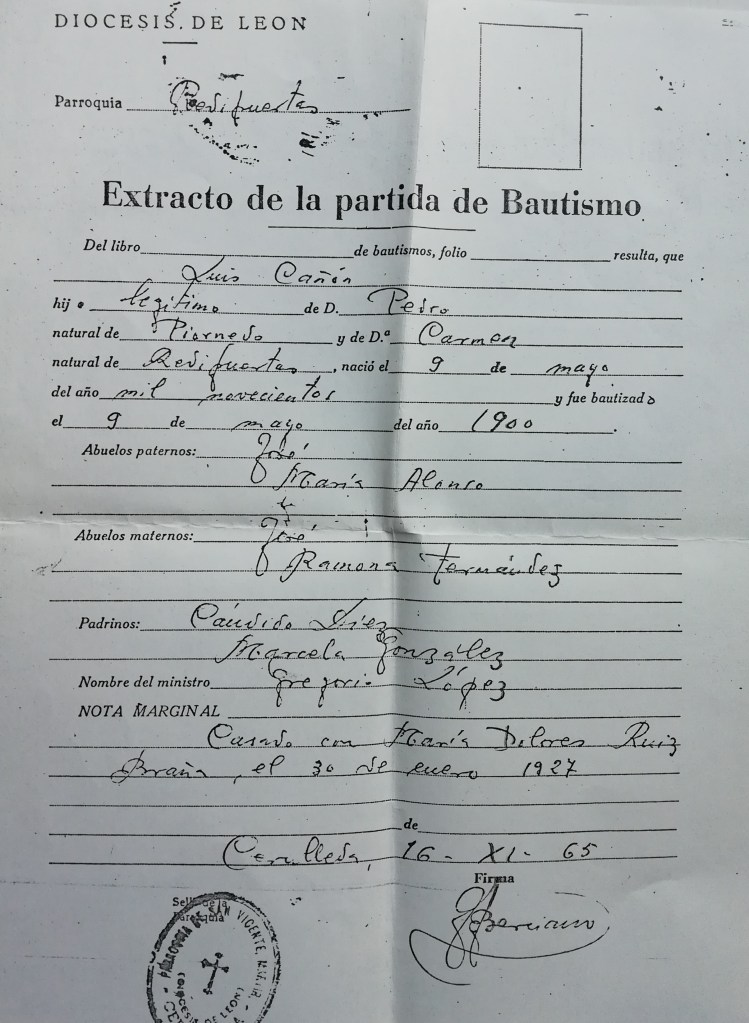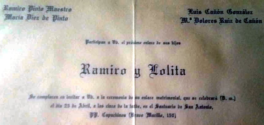 Se veían a la hora de misa, tenían que madrugar aprovechando para dar un paseo. Quedaban en meses sucesivos en Madrid los sábados y domingos. Una vez quien fuera mi abuelo Luis se puso enfermo y mi padre le atendió. Es así como entró en la familia Cañón. Y ésta en los Pinto.