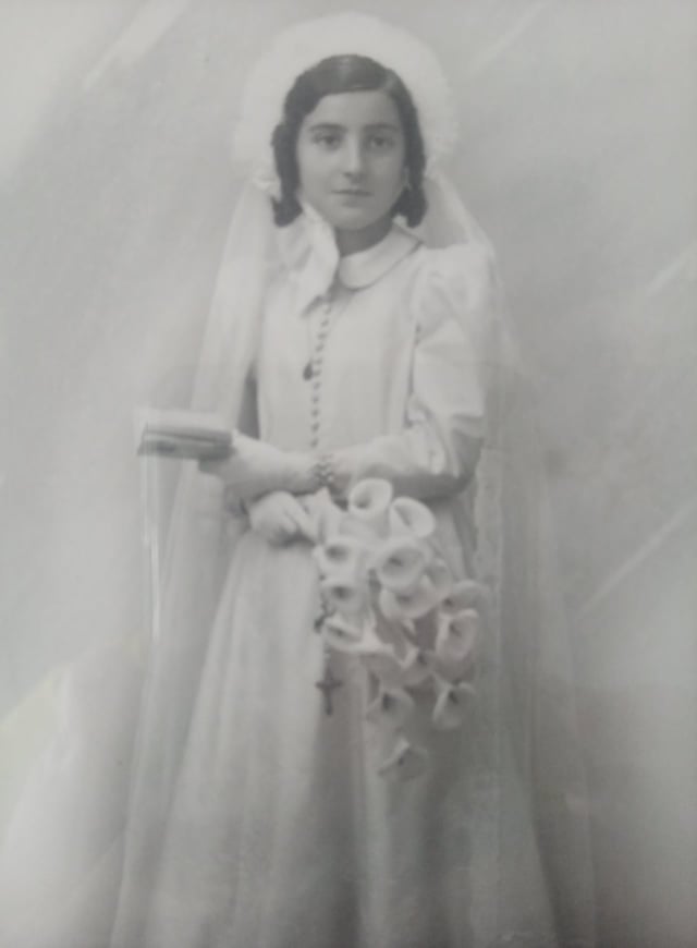 Hizo la primera comunión dos veces. El 24 de mayo para toda la familia, porque en la colectiva únicamente dejaban asistir a cinco familiares. La otra el 30 de mayo en la iglesia de Zumalacarri de Madrid. Su padre Luis no estuvo en la primera fila. No era hombre de ir a misas, pero desde entonces lo hizo, pues fue una promesa que realizó si se salvaba su nieta Loly, que estuvo por aquel tiempo muy enferma.