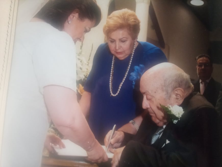 Tras ella quien escribe, con camisa azulada, a su lado Gaby.