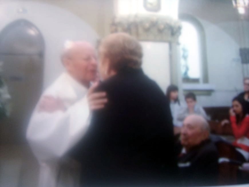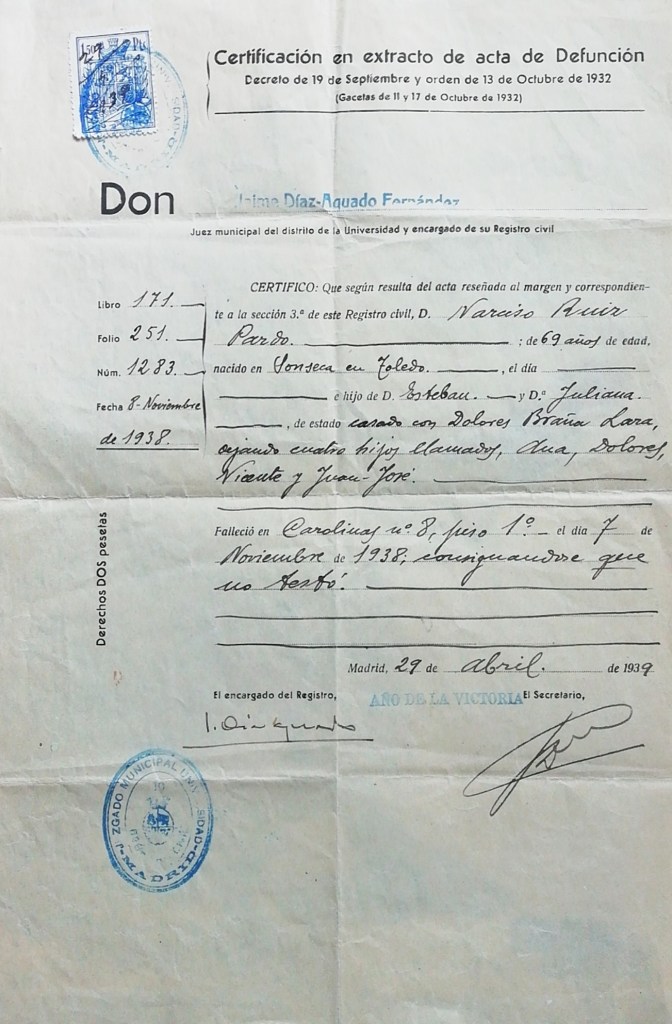 Otra persona que quedaba con mi padre al acabar la consulta fue Don Isidoro, el párroco de la iglesia de Ciudad Lineal. Tuvieron mucha amistad, que venía de largo, pues también recuerdo ver a mi padre conversar con el anterior párroco, don Victoriano, y otro cuya imagen rememoro como muy mayor, don José. Don Isidoro vino a casa a ver a mi padre cuando estuvo enfermo. Hablaban de las cosas del barrio. Tenía la misma edad que mi tía Luisa, la hermana de mi padre, y nacieron el mismo día, 28 – IV – 1929. Murió un mes después que mi padre. Tuvo la enorme ilusión de poder hacer el funeral a su amigo Ramiro.