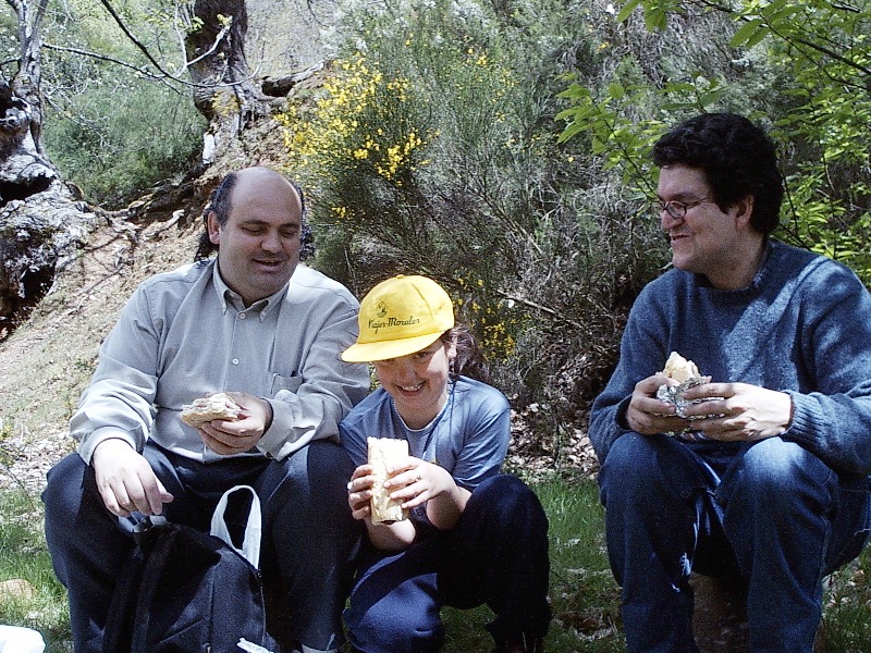 Los años que fui vegetariano, Raquel me hacía una ensalada, pero se metía conmigo, en bromas, pero con su cierto genio, «no hagas bobadas». Y decía, ¿qué podré hacer yo para que comas como Dios manda? Le propuse una cosa, comería lo que me pusiera si ella comía en la mesa. Y así lo hicimos ambos. Ella comía metiendo el embutido o el queso entre trozos de pan, a modo de pequeños bocadillos y del guiso de carne no lo probó, ni postre ni nada más, pero se sentó a comer a mi lado. Ignacio había comido antes y se echó la siesta en el banco de la cocina, con nosotros. Raquel me decía: «Los hombres es mejor que estéis dormidos».