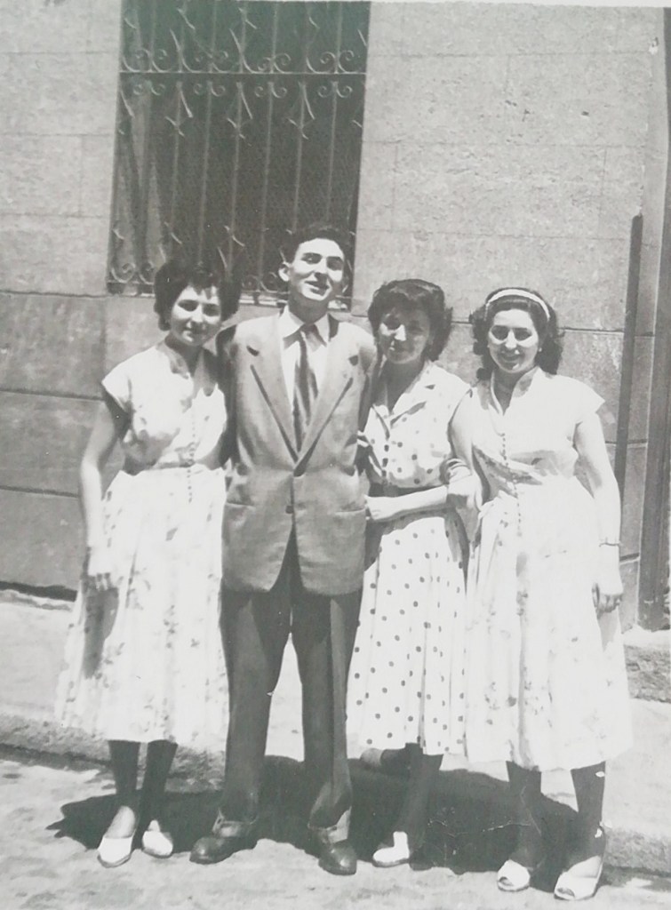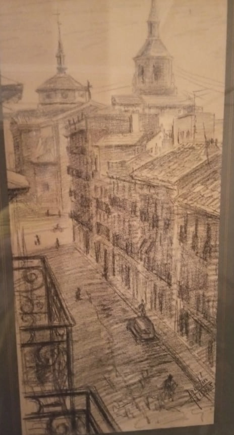 La casa donde vivimos está en la calle Alcalá, entre Hermanos de Pablo y la calle Caudillo de España, que con la memoria histórica se llama ahora «Doctor Vallejo». Está justo entre las dos bocas de metro a ambos lado, de la misma acera. Por la primera dirección íbamos al colegio los chicos. Mi hermana por la otra al suyo. Era nuestro barrio, ese trozo. Sin ser exhaustivo, pero es lo que formó parte de nuestro mundo. Un trocito de él. Ha cambiado mucho y ya no queda casi ni el recuerdo. Saliendo del portal a la derecha estaba el bar La Moraña, al que íbamos a tomar un mosto, luego una caña y sepia con alioli que tanto gustaba a la tía Lola. Que alguna vez se empachó, decía mi padre que por no masticar bien. Mas allá la panadería, a la que íbamos a comprar «una pistola», como se llamaba la barra, que era para «matar el hambre». Y el que iba a comprarla se ganaba un colín, una barra de pan muy fina y que crujía. Se hacía el pan allí. Entre medias estaba un portal que luego fue famoso al ser los porteros de ese edificio los abuelos de Belén Esteban, donde vivió algún tiempo cuando fue niña. Mi hermana trató como médico a la abuela, al hacer la interinidades en el ambulatorio del barrio. A veces le acompañó la nieta, ya famosa. Mi hermana le comentó que era muy diferente «a la que sale en la tele» y ella dijo que en ésta representa un papel. En esa misma acera una droguería, «Las Camelias», llevada por Paco. Veraneó luego en los chalés de los Enebros en Moralzarzal – Madrid y fuimos amigos de sus hijos, sobre todo de Paquito. La mujer era Manolita. Vendía colonias, cremas y productos de estética y juguetes. Hizo tratamientos contra la caída de pelo y quiso que mi padre probara uno para recuperar el pelo, a lo cual mi padre se negó. La tienda estaba siempre a rebosar. Abrió otras en otros barrios. Un relaciones publicas perfecto. Mi padre decía que era capaz de vender una abrigo en el desierto y te quedas contento. En frente recuerdo una zapatería.