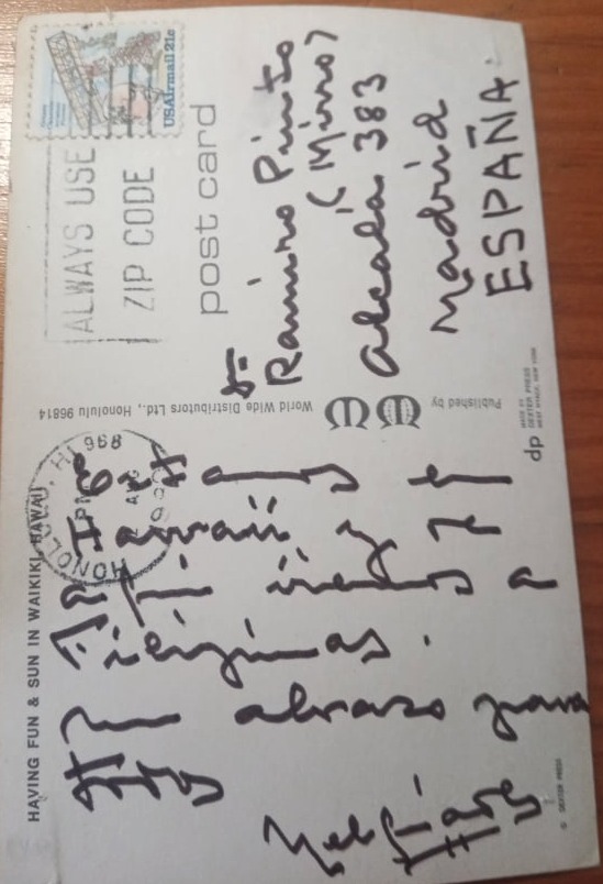 Antes en ese piso fue muy curioso para mí, ya que vivía una mujer que cantaba en un coro zarzuela y también una amiga suya una amiga que vivía con ella. Una vez escribí a la revista Integral para contactar con gente que quisiera formar parte de una Internacional Juvenil, que planteaba que los auténticos explotados éramos los jóvenes y pretendía unir los movimientos pacifistas, ecologistas, de objeción de conciencia, feministas, incipientes en aquella época. Puse mi dirección, puse el teléfono de casa, pues de aquella no había internet ni telefonía móvil. Me llamó Daniel, que resulta era nieto de la señora que vivió arriba de nosotros, y él con ella. Me había cruzado con él alguna vez en la escalera y no nos dijimos nada más que «hola», y «hasta luego». Era de Valladolid, adonde se fue años después. Nos hicimos muy amigos. Él hacía Tai Chi y tocaba la flauta. Íbamos al parque del Retiro a pasear y hablar con dos o tres más que soñábamos con hacer la revolución mundial…