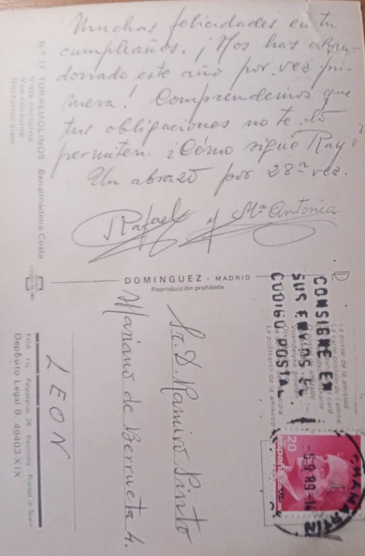 Un edificio con sus personajes. Algunos que recuerdo son Domingo, que decía que gracias a su nombre siempre estaba de fiesta. Trabajaba en la portería. Un forofo del Real Madrid. Se quejaba de que las entradas para ver los partidos fueran tan caras. Y él no tenía tiempo, pues trabajaba toda la semana. Cuando legaron los derechos laborales los vecinos se quejaron mucho. Luego hubo otros porteros, pero dejaron de vivir en el edificio. Se contrata a una empresa que manda trabajadores para el tema de limpieza y recoger la basura. Domingo fue siempre muy servicial. Tenía unas gafas de culo de botella. Vivía en el primero piso con su mujer, Mercedes y los tres hijos: Román, que luego fue taxista y más tarde trabajó en una empresa de seguridad en el aeropuerto de Barajas. Merceditas y el pequeño, Carlos. Debajo de nosotros vivía Mari Cruz. Murió a los sesenta y pocos años. Venía de un pueblo. El marido de Mari Cruz es Víctor, el señor Víctor, una bellísima persona que con sus noventa y algunos años se mantuvo en plena forma. Con sus achaques. Murió el año 2020. En la misma planta vivía el doctor Paredes, ginecólogo, con su mujer, «la de Paredes», con sus hijos. Él murió hace años y ella en febrero de 2021. Era muy gordo, más que mi padre. En el ultimo piso, el 5º, una pareja que fueron muy amigos de mis padres. Salían alguna vez a cenar. Carmelo, un hombre muy grandón, vasco, y Herminia, que enfermó de cáncer. Gastaron una fortuna en su curación, pero no fue posible. Falleció. Él se volvió a casar y tuvieron dos hijos. Él ya era mayor. Se mudaron a otra casa. Y la vecina de arriba, de los últimos veinte años fueron las Lidias, madre e hija tocaya. La hija es médico.
