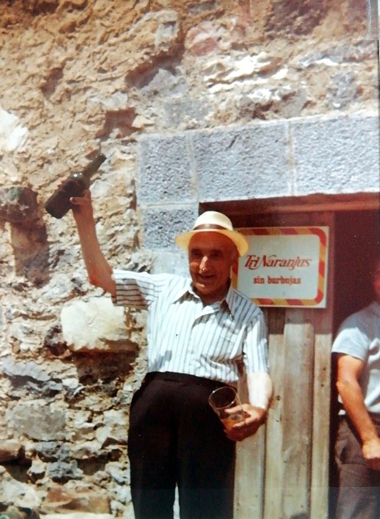Siempre mantuvo la costumbre de ir a tomar el aperitivo, con los compañeros de trabajo, amigos también, y otras personas que iban a buscarle para dar un paseo y charlar, entre otros el párroco don Isidoro y Rafa, Rafael Uña, un antiguo compañero de estudios de bachiller. En cierta medida fueron personajes que representaban su época y su ser clase media, como ellos se situaban. Mi padre contaba muchos chistes, siempre venía alguno a colación de lo que hablaban. Algo que me recuerda cuando Andresín, el nieto de su madrina Araceli, hace lo mismo en las conversaciones. Mi padre era un lector asiduo de La Codorniz, decía que era la única oposición seria a Franco. Se reía mucho, y más cuando contaba a alguien algo de ella. Su risa era muy característica, nunca he visto una igual. Enseñaba los dientes juntos y hacía un sonido especial «chiiiirrriiiichiiii». Por cierto, siempre presumió de tener una dentadura excelente, hasta los últimos años de vida la mantuvo intacta. Los dientes un poco amarillentos, porque fumó mucho: Tres paquetes diarios, «Celtas». Cuando nació mi hermana Loly lo dejó drásticamente. Ella los primeros meses de vida estuvo muy delicada, «creíamos que no salía delante» y además enfermó de pulmonía.